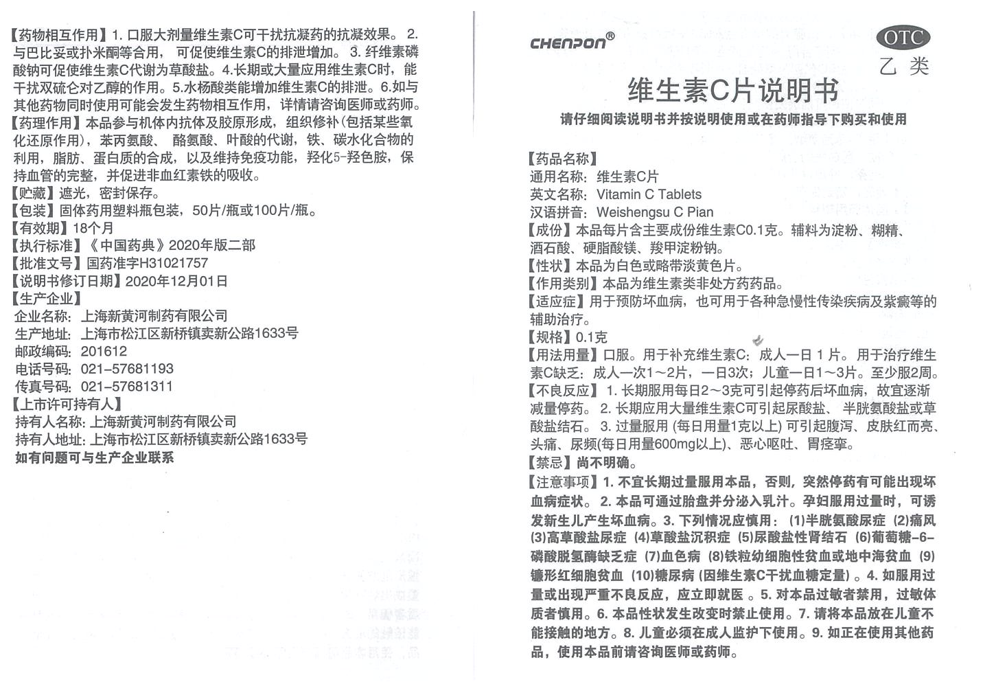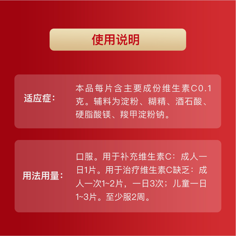天猫阿里健康大药房,【新黄河】维生素C片100mg*100片/盒紫癜坏血病辅助治疗口服预防坏血病