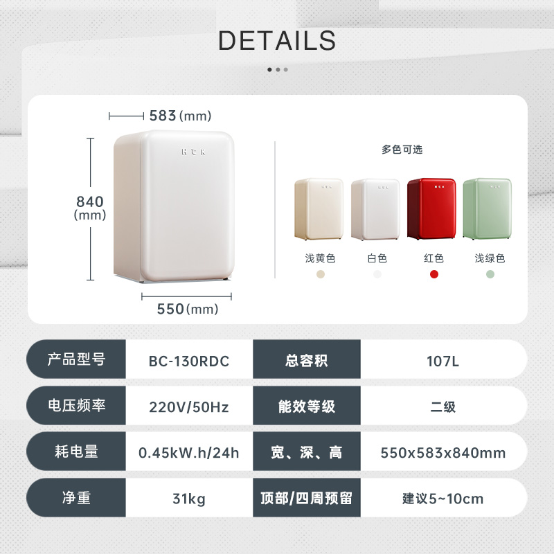 天猫HCK电器旗舰店,hck哈士奇130rdc复古家用小冰箱,晒图评价咨询客服返50元红包