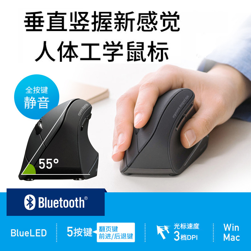 日本SANWA无线鼠标大尺寸人体工学男蓝牙usb电脑直立竖握静音无声
