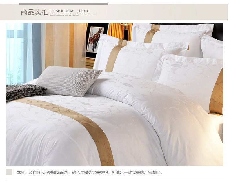 淘宝红棉树永盛纺织,五星级酒店白色床上用品四件套布草,我们郑重承诺凡是购买本厂四件套的,我们保证不会出现起毛,起球以及缩水率超标等问题,同时我们也保证在正常的洗涤情况下使用2—3年时间是不会出现破损等问题的,如果出现以上问题我们免费退换所有产品,同时我们会和您签订宾馆用品的买卖合同,以法律的形式解决您的后顾之忧,我们也欢迎广大客户来我们公司实地参观考察