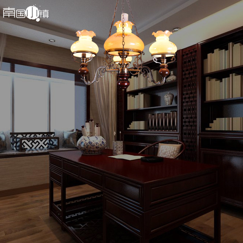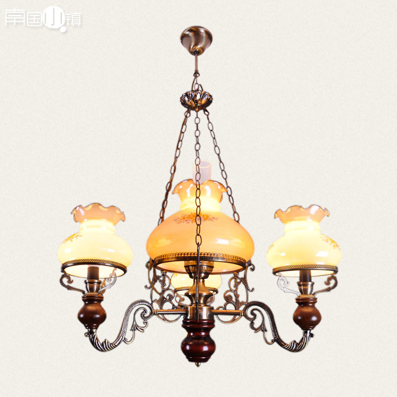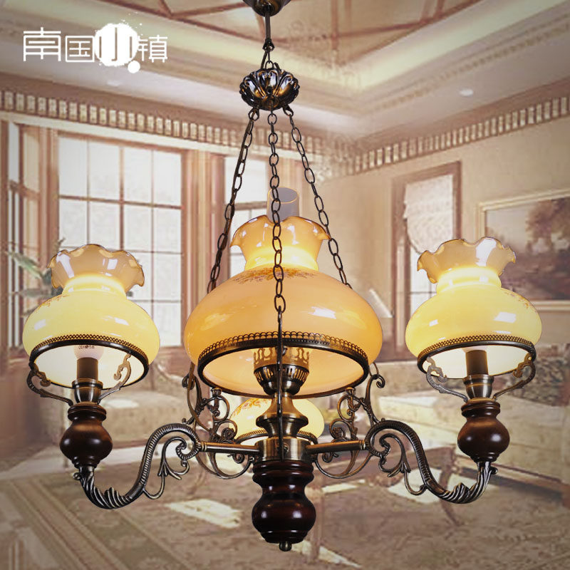 淘宝南国山水清,餐厅吊灯复古怀旧老上海4枝型吊灯,复古印花灯罩 内含内灯罩 灯光更显优雅怀旧,配50cm链条可以自行调节