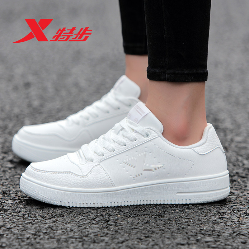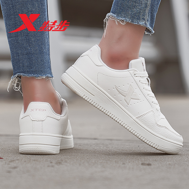 特步女鞋板鞋2023新款秋季休闲运动鞋学生轻便软底低帮小白鞋秋款