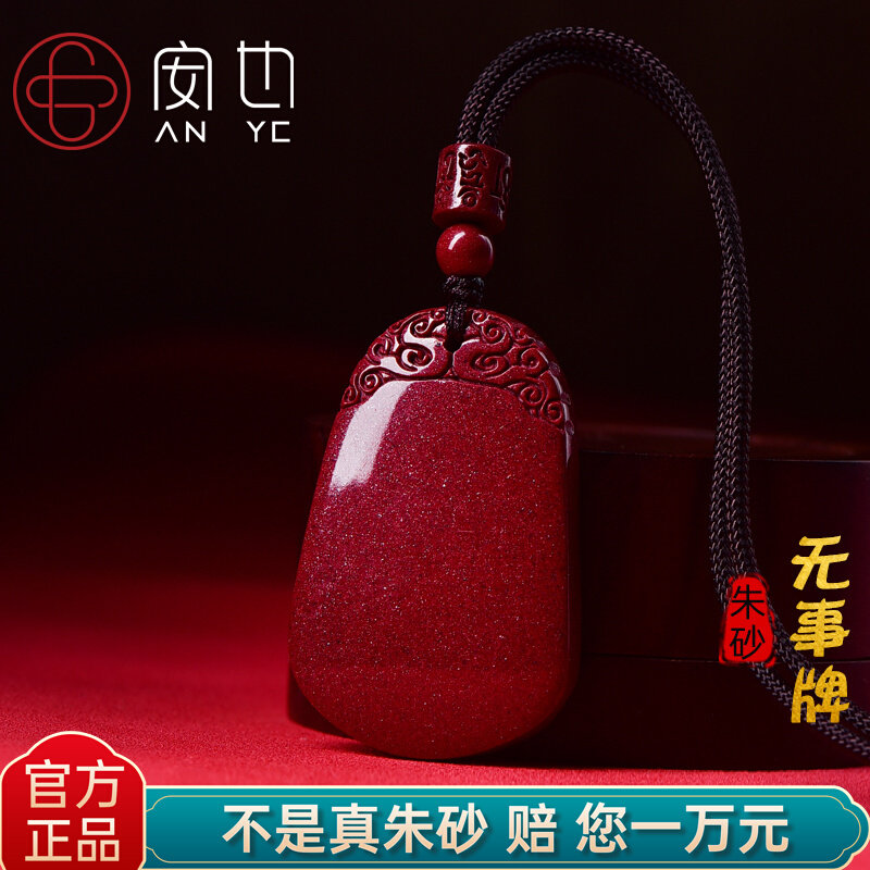 淘宝一生一饰小众饰品,保真正品帝王朱砂平安无事牌吊坠男女款紫金砂高档挂件原石款项链