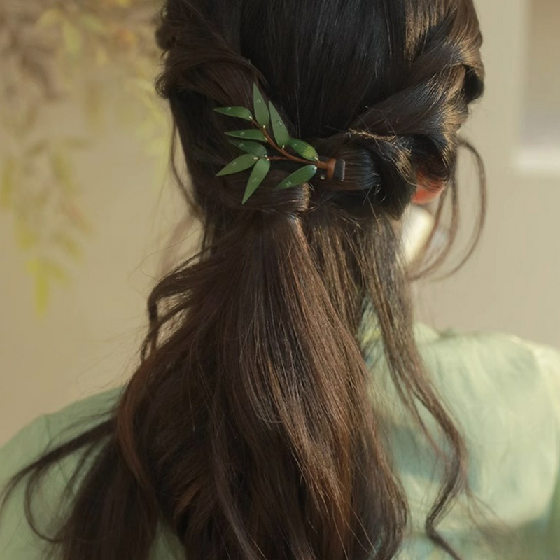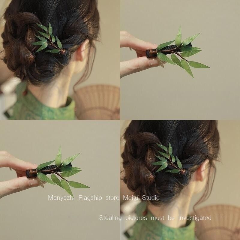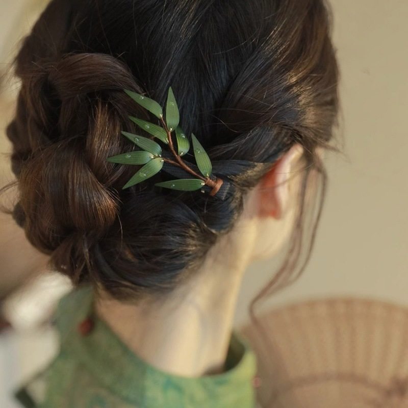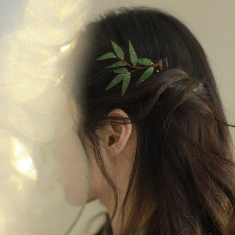 风摇翠竹!国风水滴竹叶发夹!侧边夹气质后脑勺新中式头饰高级感