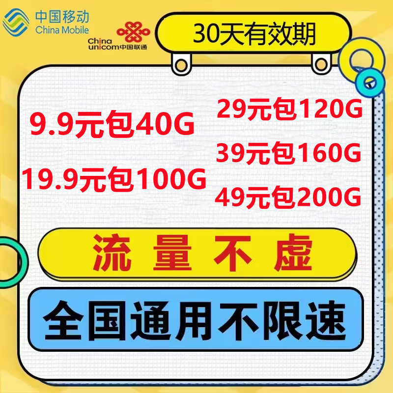 电信4g5g手机无线高速上网卡流量卡