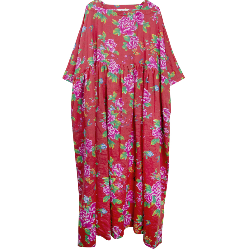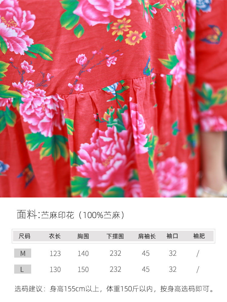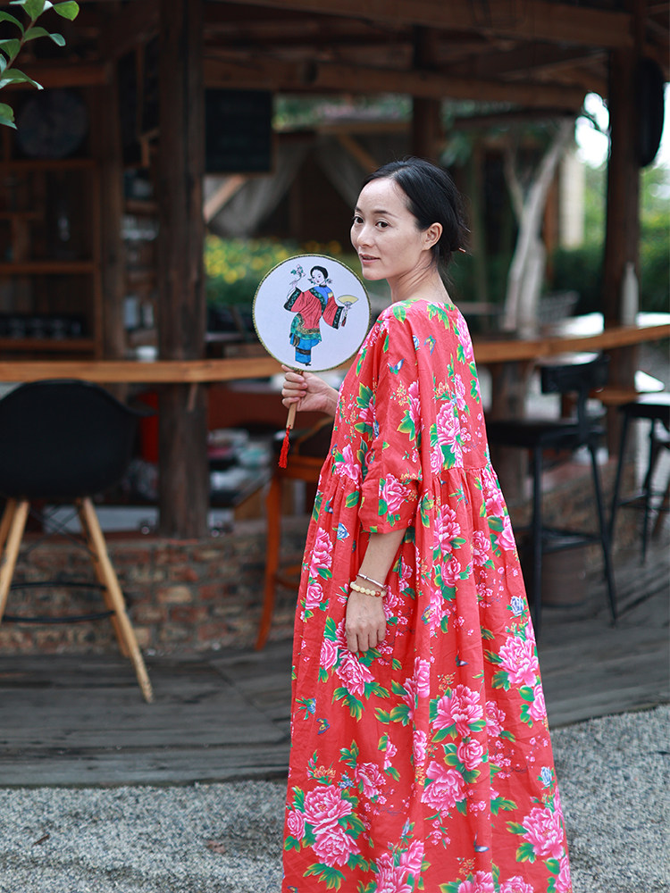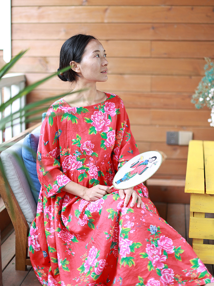淘宝小素原创设计,苎麻印花小众宽松长款袍子