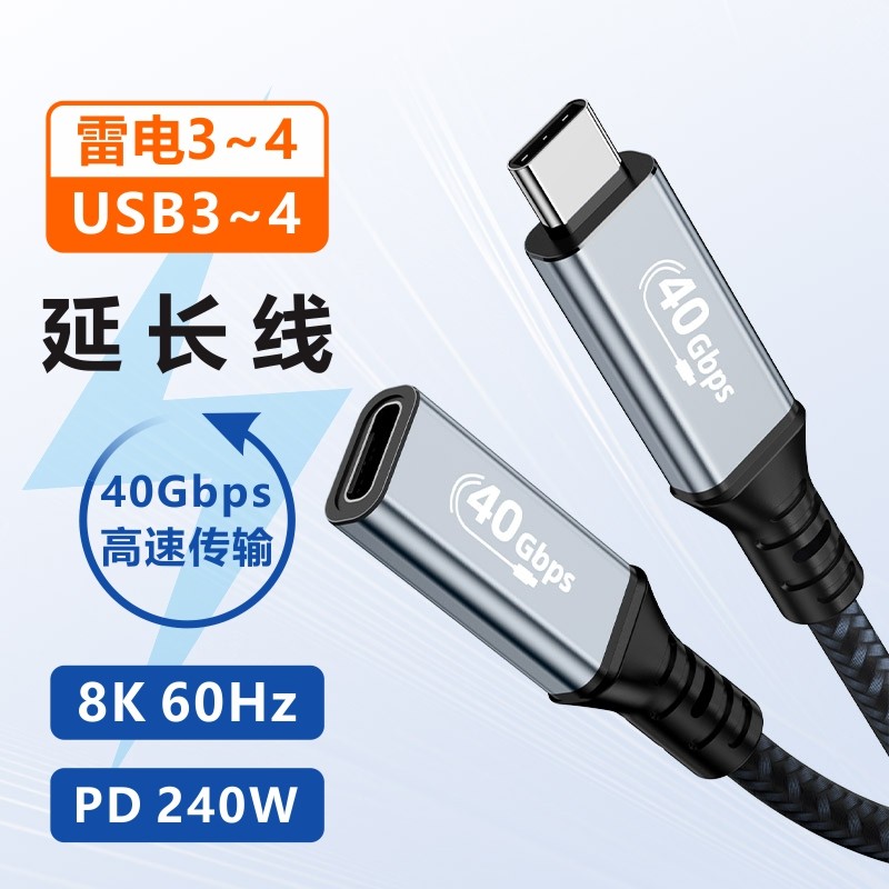 天猫洛伊凡旗舰店,雷电4 usb4.0传输pd100w快充延长线,40Gbps高速传输 8K高清投屏 PD240W快充