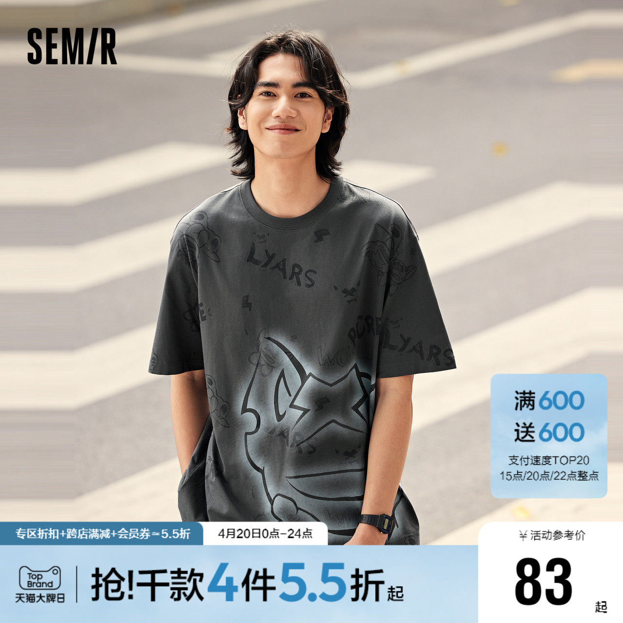 天猫森马官方旗舰店,森马宽松休闲印花情侣短袖T恤男,宽松版型 创意印花 休闲情侣装