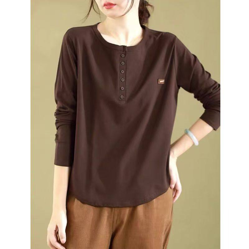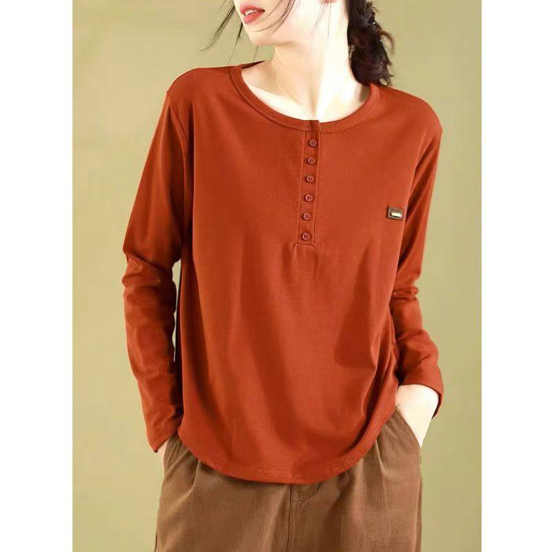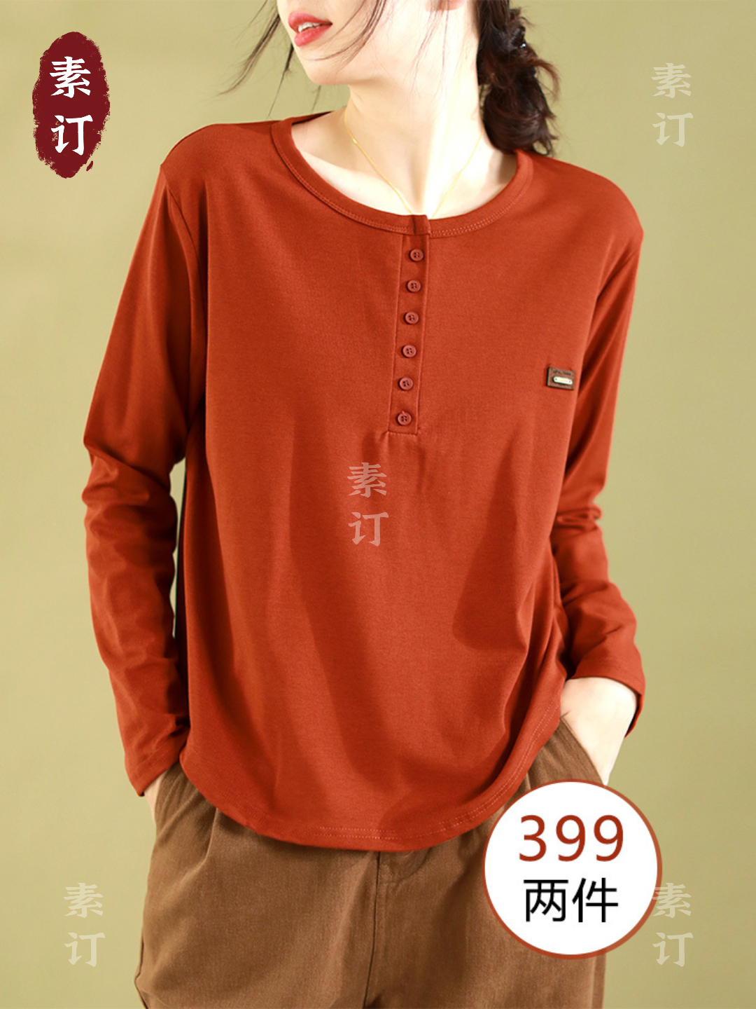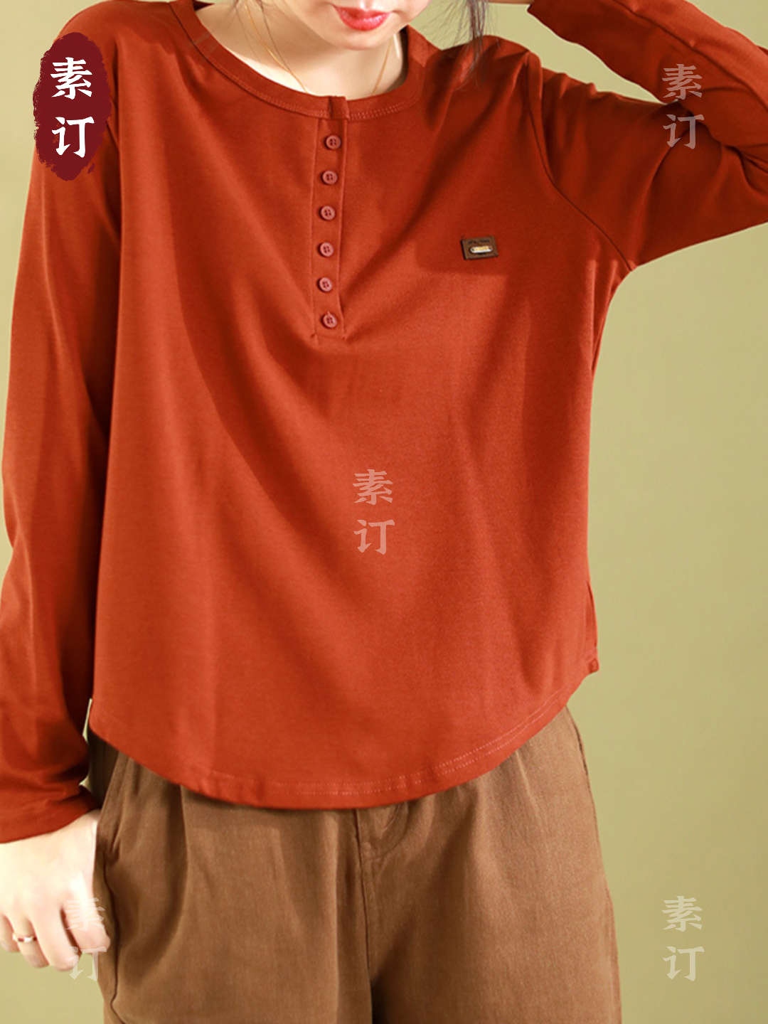 淘宝素订原创国风女装,素订女装原创品牌旗舰店文艺长袖T恤宽松纯色休闲打底百搭上衣女