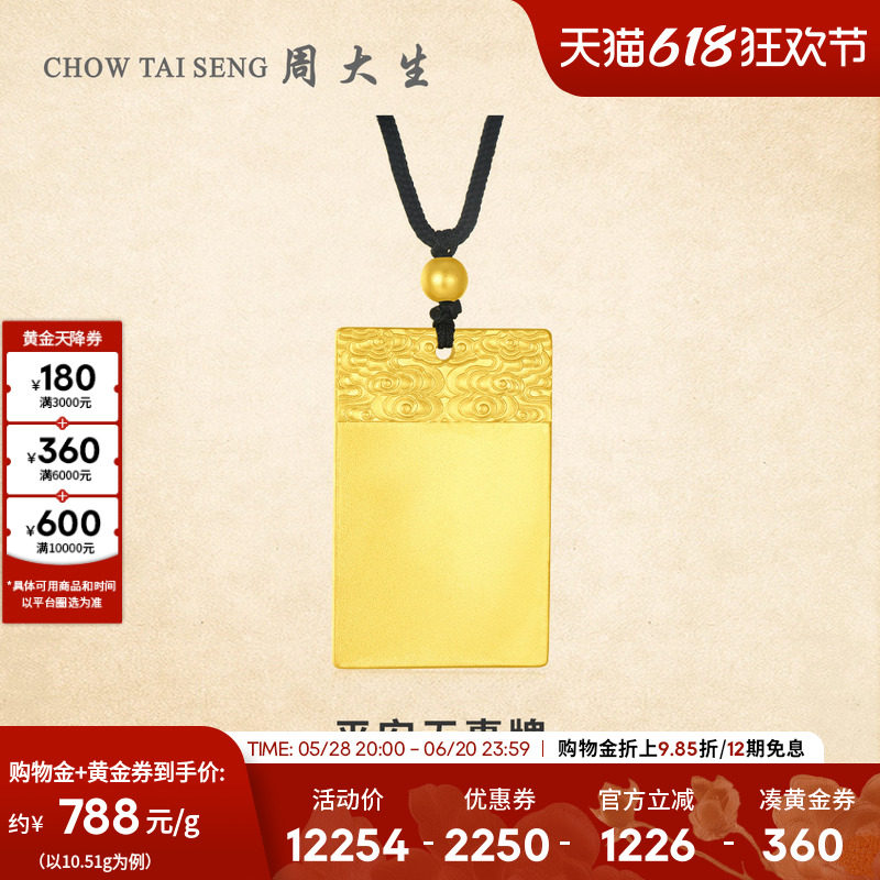 天猫周大生旗舰店,周大生黄金平安无事牌吊坠足金挂坠配绳可刻字男父亲节礼物送爸爸