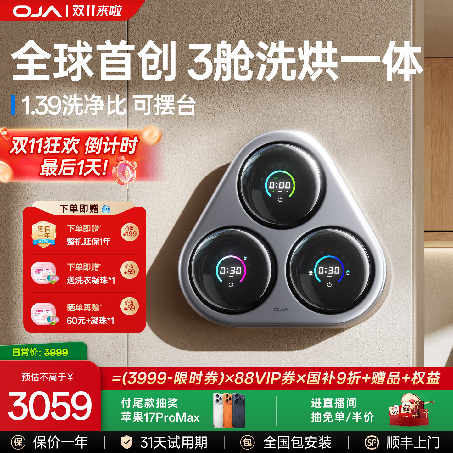 天猫oja电器旗舰店,【热销第一】3舱分区洗烘,三桶分区 洗脱烘一体