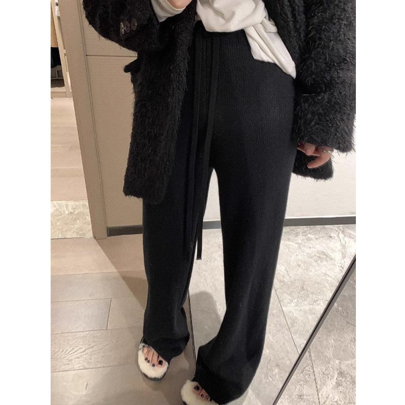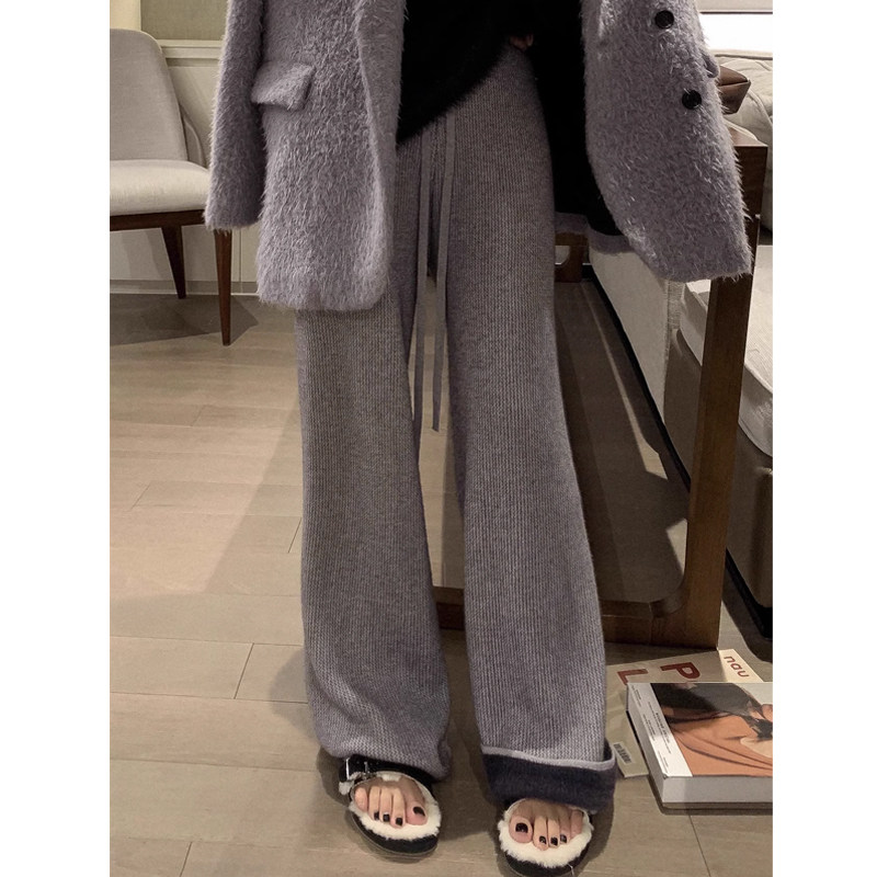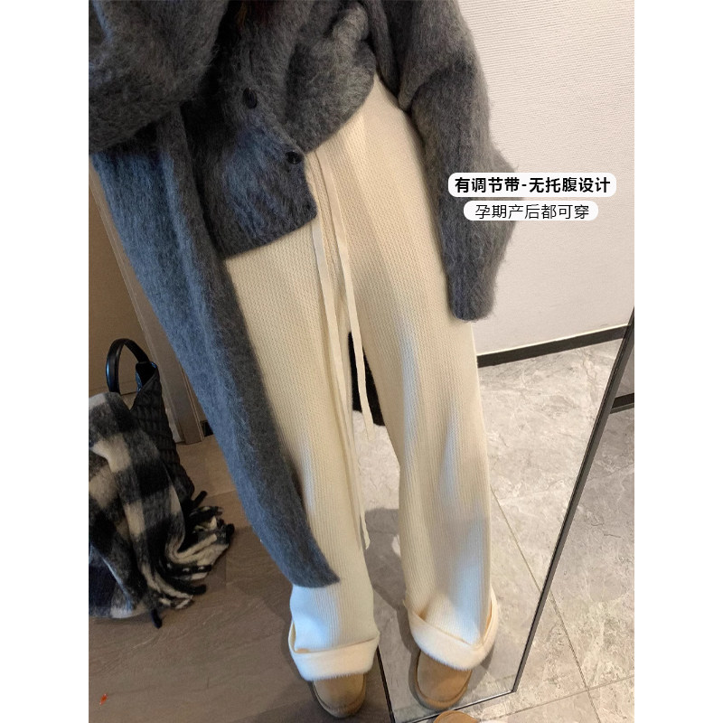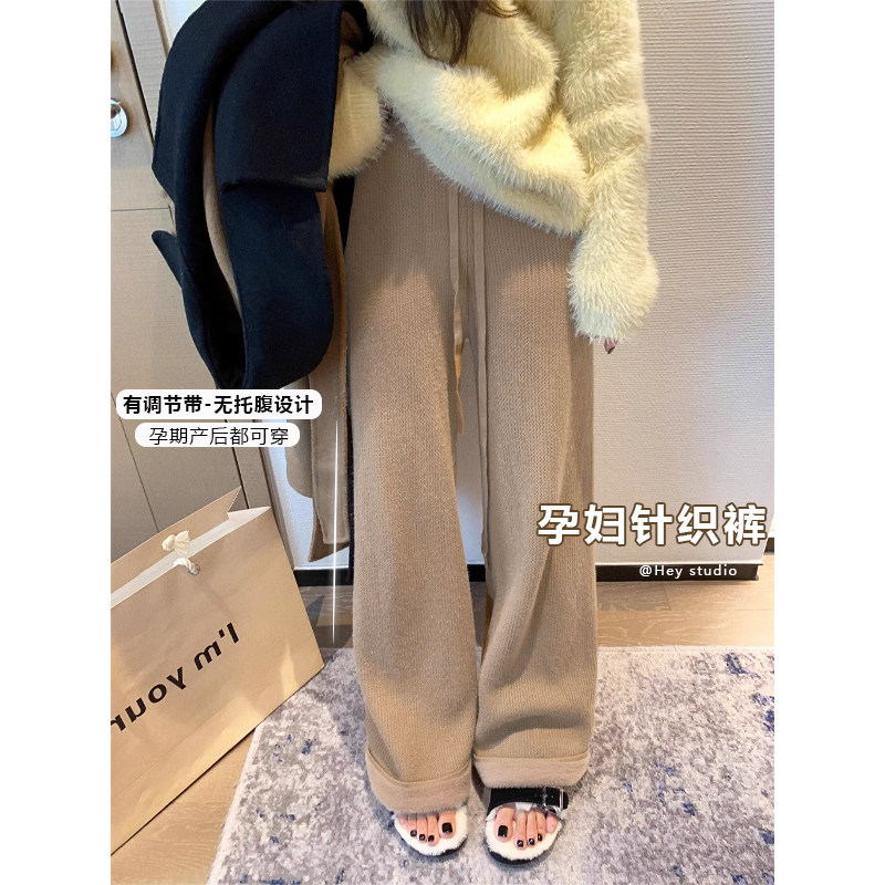 孕妇裤子秋冬季加厚新款气质燕麦针织阔腿裤休闲宽松直筒垂感长裤