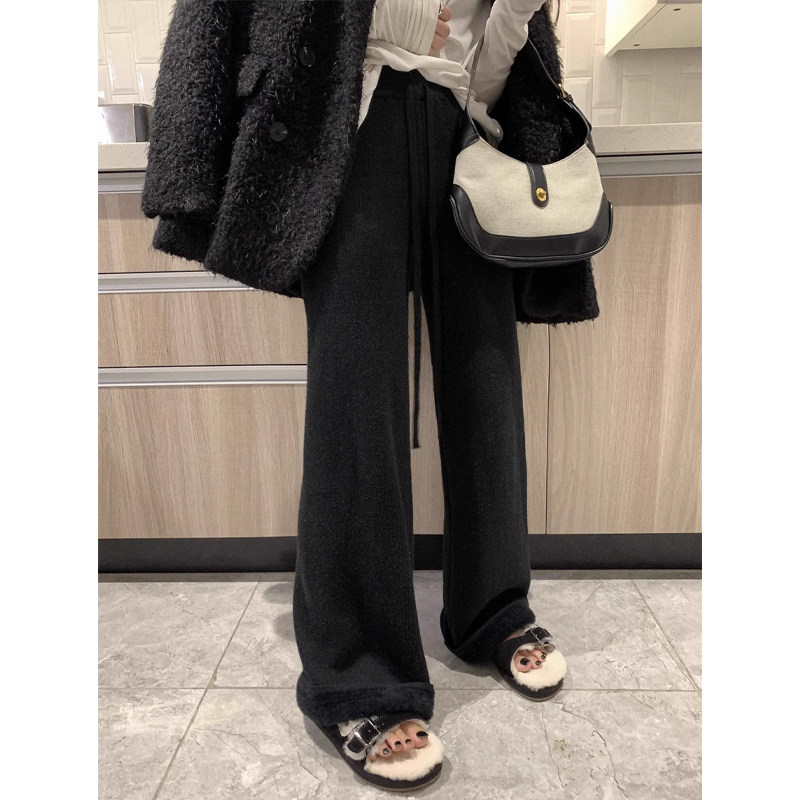孕妇羊毛阔腿裤秋冬季加绒加厚阔腿裤显瘦休闲针织垂感百搭直筒裤
