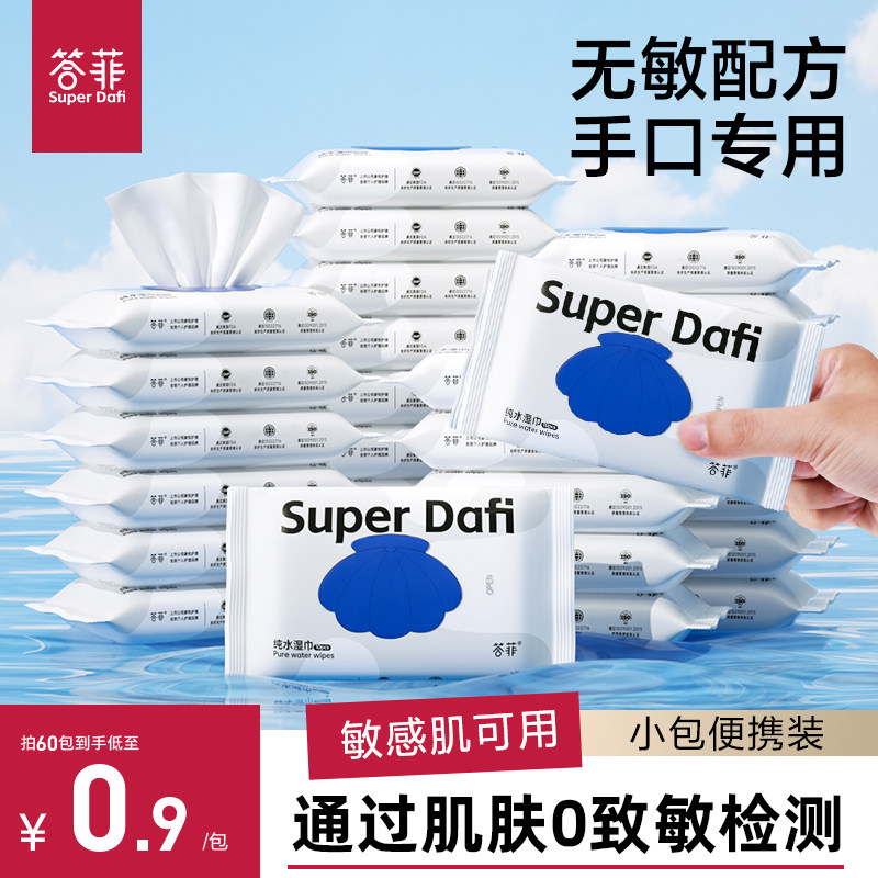 天猫答菲洗护旗舰店,答菲小包便携纯水湿巾60包,随身小包湿巾 纯水不刺激
