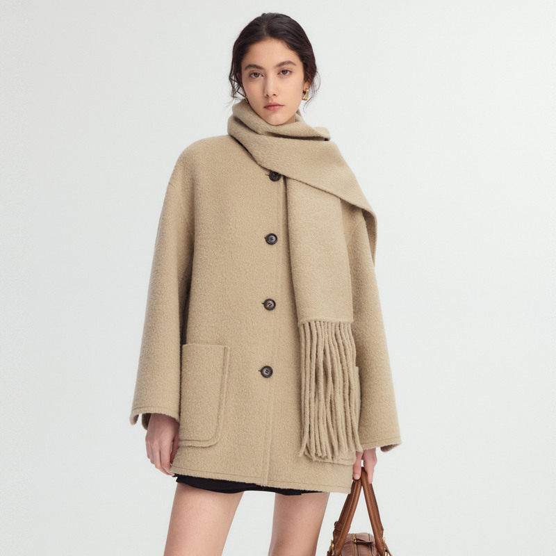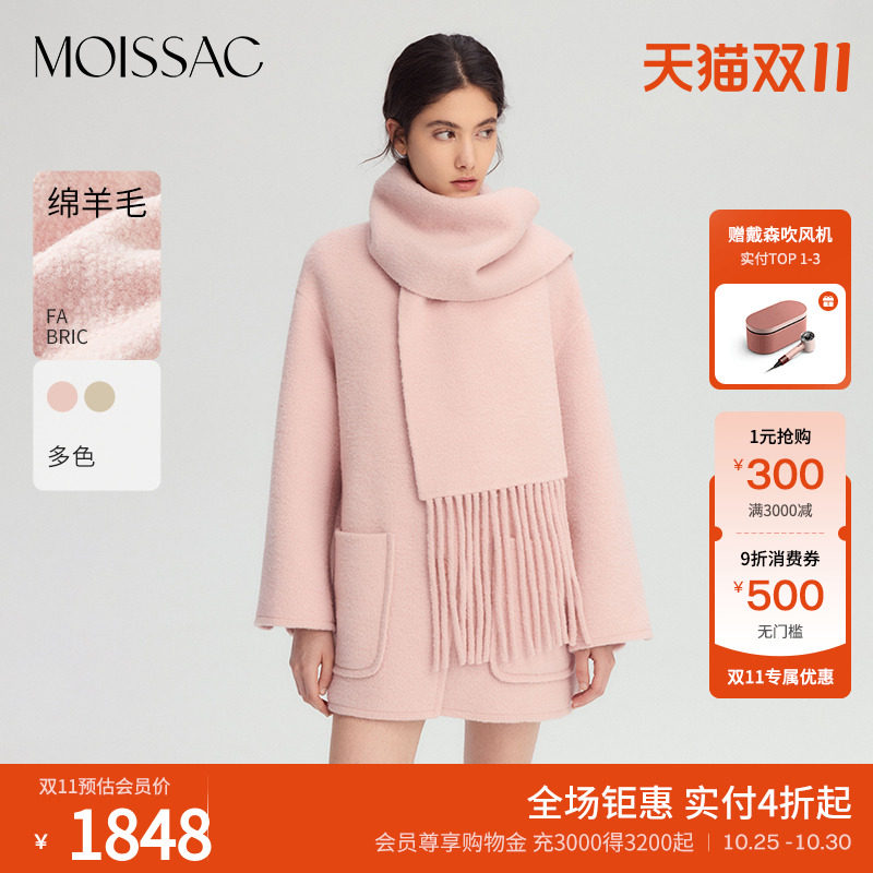 天猫moissac旗舰店,可拆卸围巾羊毛呢休闲大衣