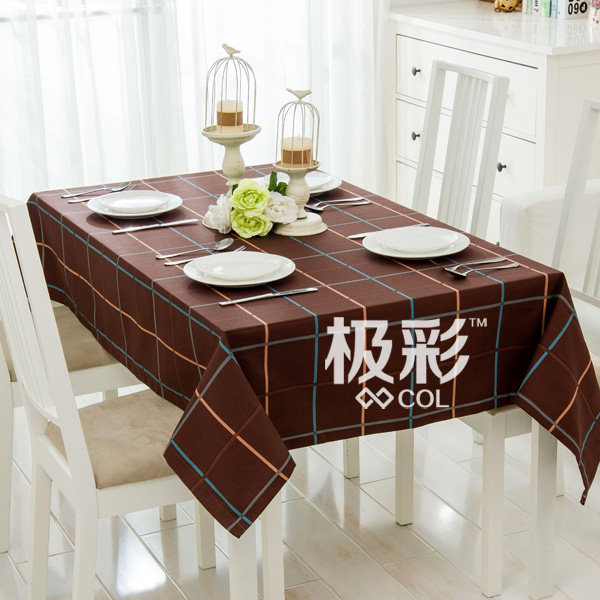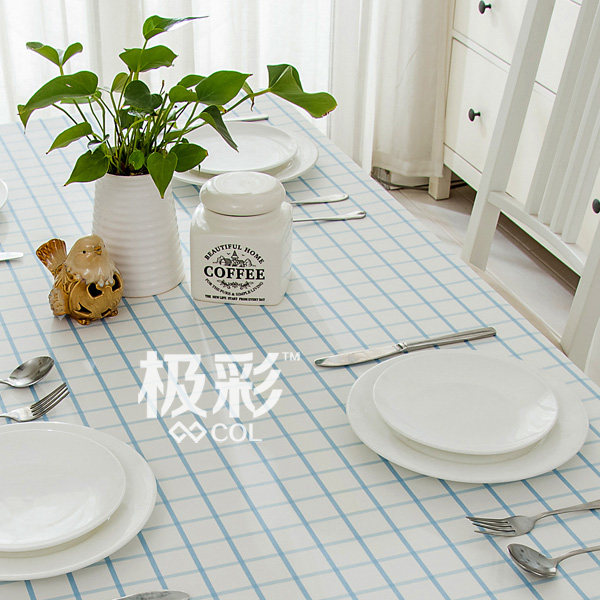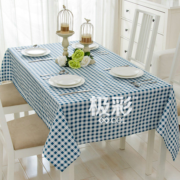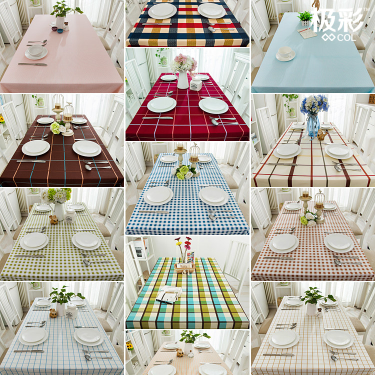 淘宝极彩,现代地中海格子简约纯全棉帆布台布