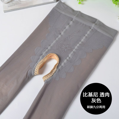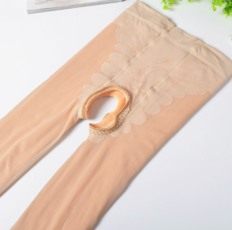 加绒加厚雕空假透肉打底裤冬季镂空漏裆防勾丝踩脚女连袜