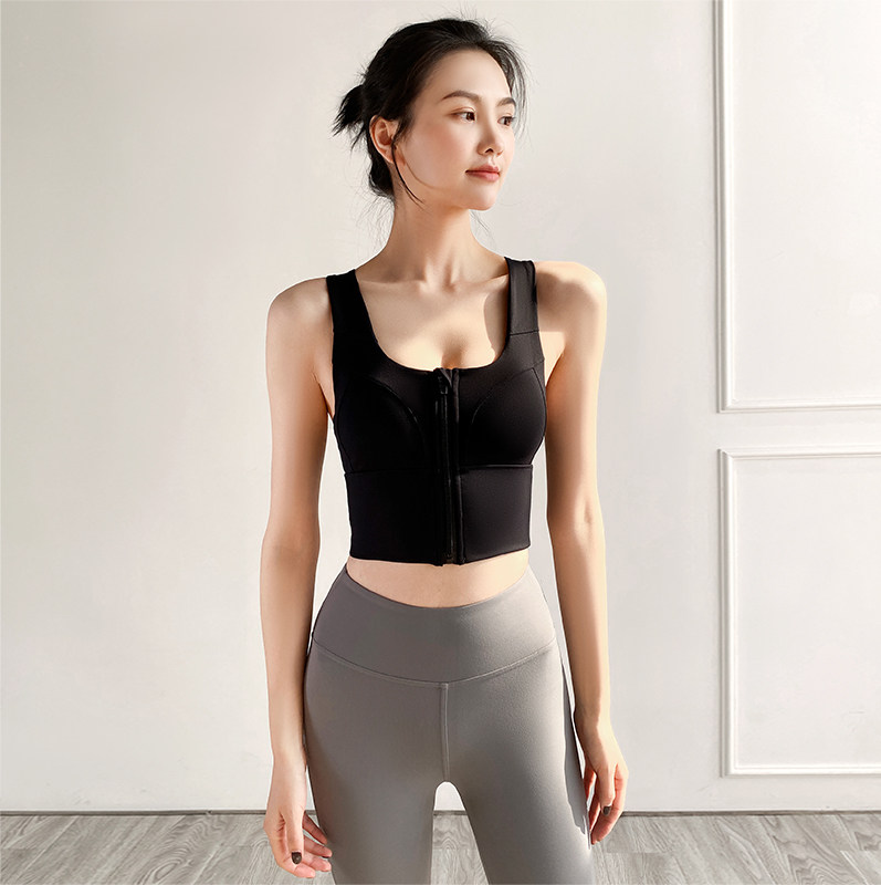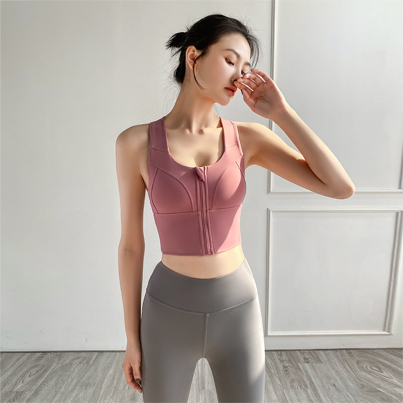 运动内衣女前拉链跑步防震高强度聚拢健身文胸夏季美背瑜伽服背心