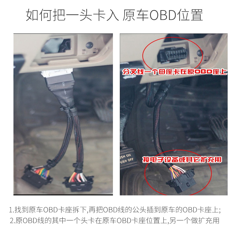 天猫1126587235893387,obd一分二分线器obd2原车延长线,原装接口 更佳美观 送布线扣