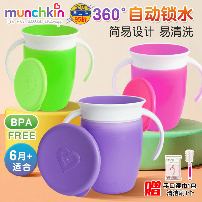 munchkin麦肯齐满趣健学饮杯防摔儿童饮水杯宝宝防漏广宽口魔术杯
