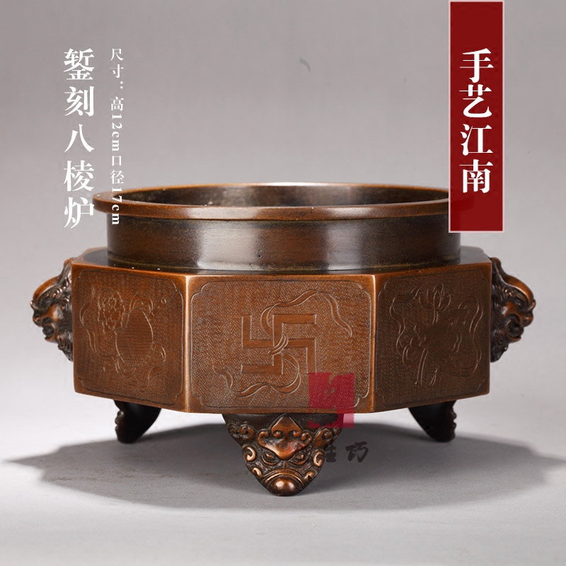 天猫巧生炉旗舰店,手艺江南 巧生炉 陈巧生制 錾刻八棱炉 宣德炉 铜炉 香炉 文玩