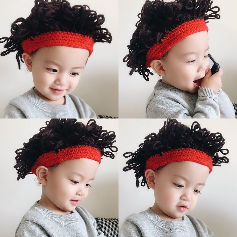 道明寺同款 男女童宝宝毛线爆炸头针织帽帅气短发假发婴儿帽