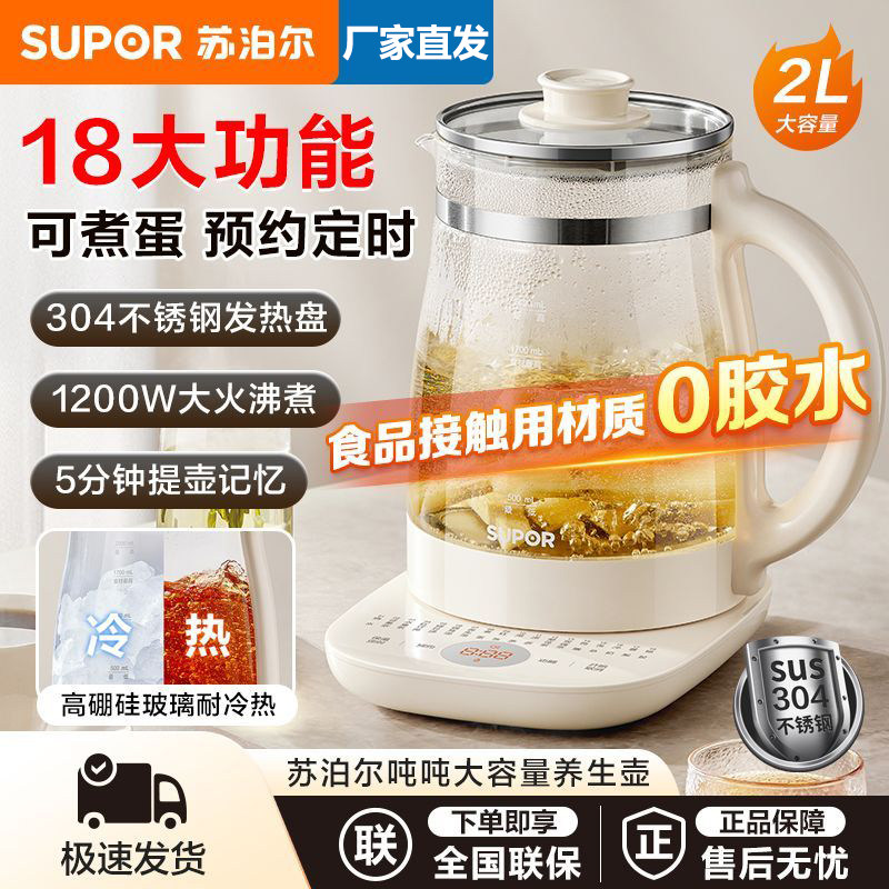 淘宝苏泊尔家电直销,苏泊尔养生壶家用2L大容量带茶篮