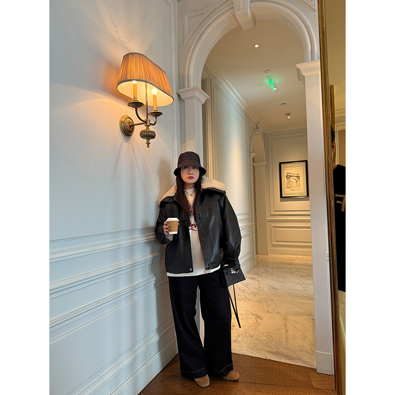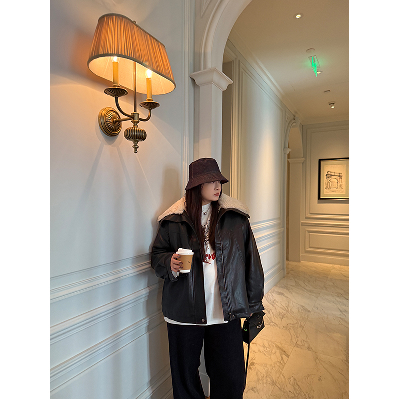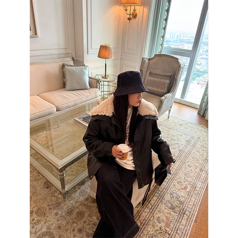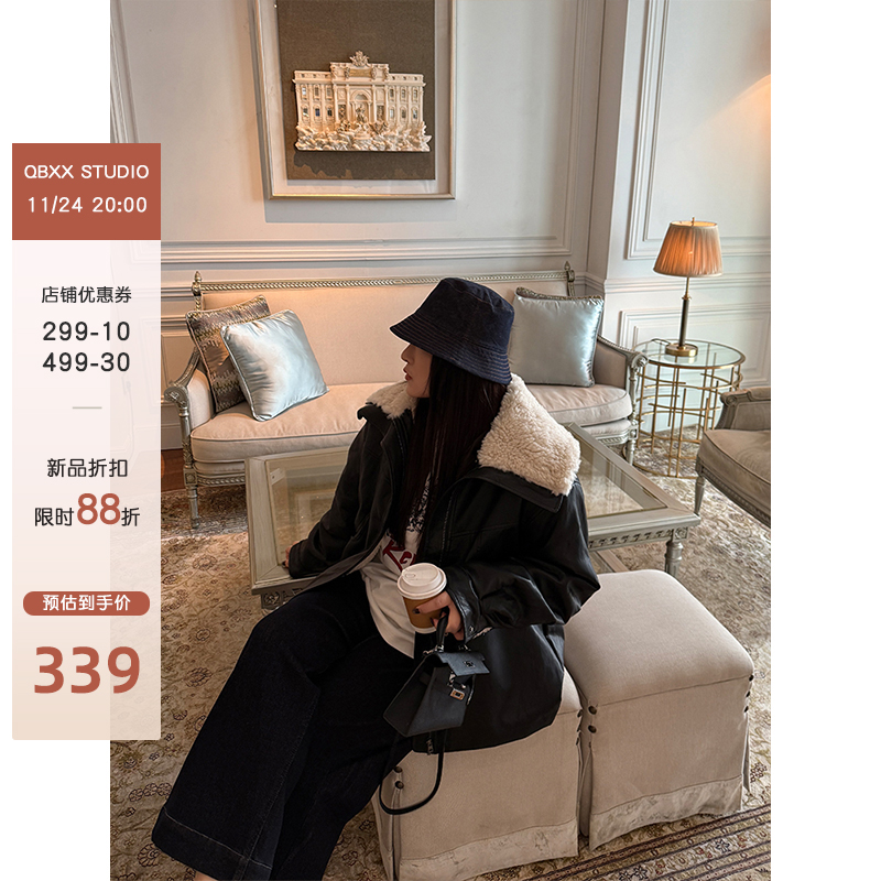 淘宝QBXX STUDIO 铅笔小鑫的店,铅笔小鑫大码女装保暖御寒 复古羊羔毛 大翻领皮衣大码外套
