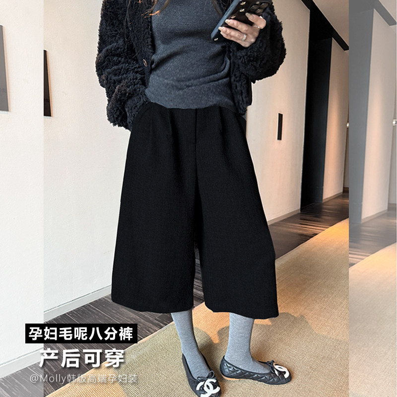 淘宝Molly韩版高端孕妇装,产后可穿|孕妇毛呢八分阔腿裤子
