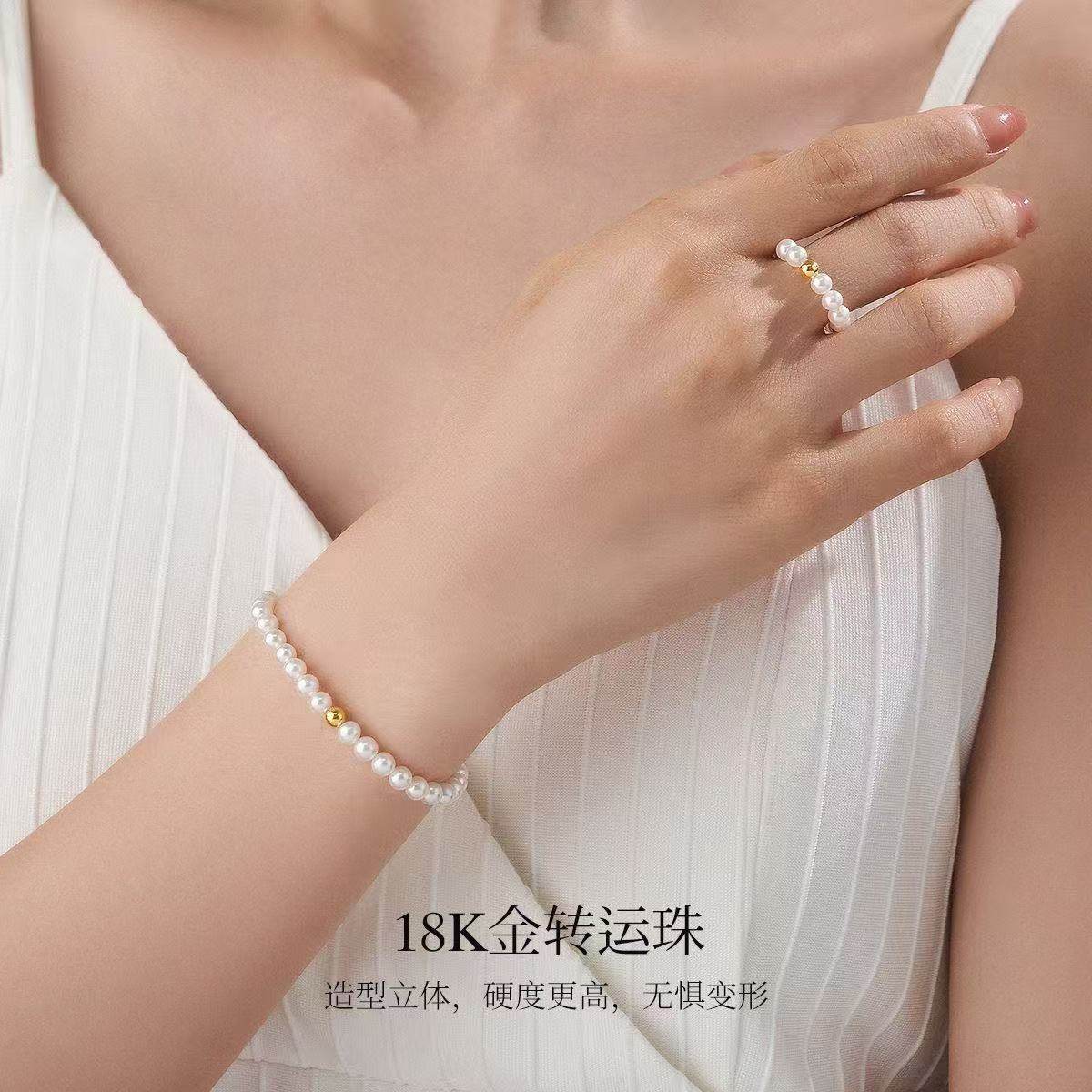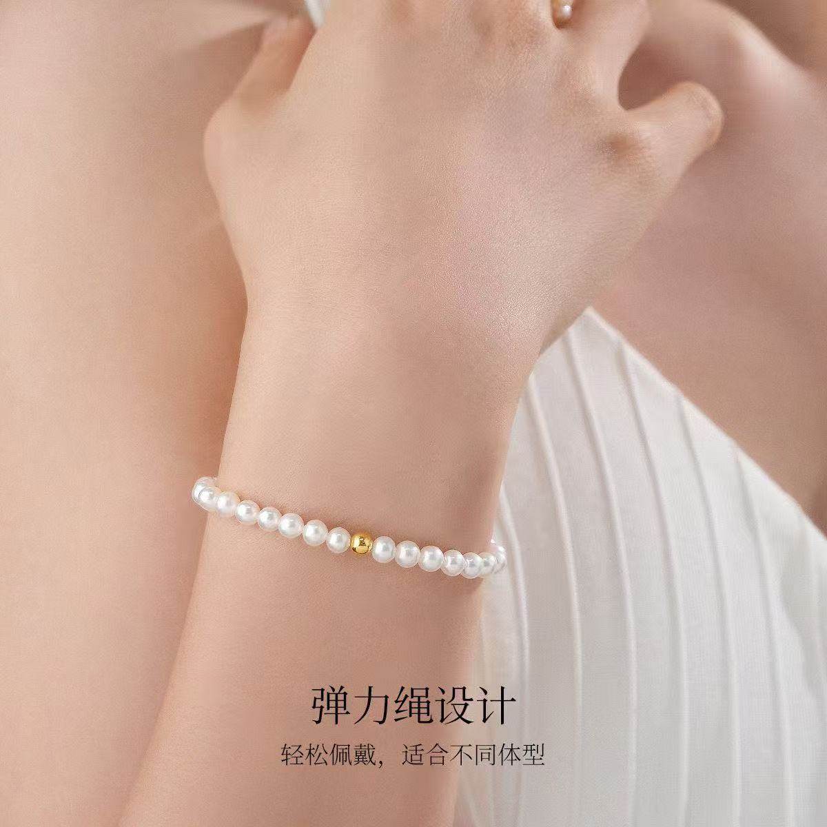 天猫1688官方工厂,诸暨淡水珍珠手链女18K金正圆小米珠手串轻奢高级感气质节日礼物