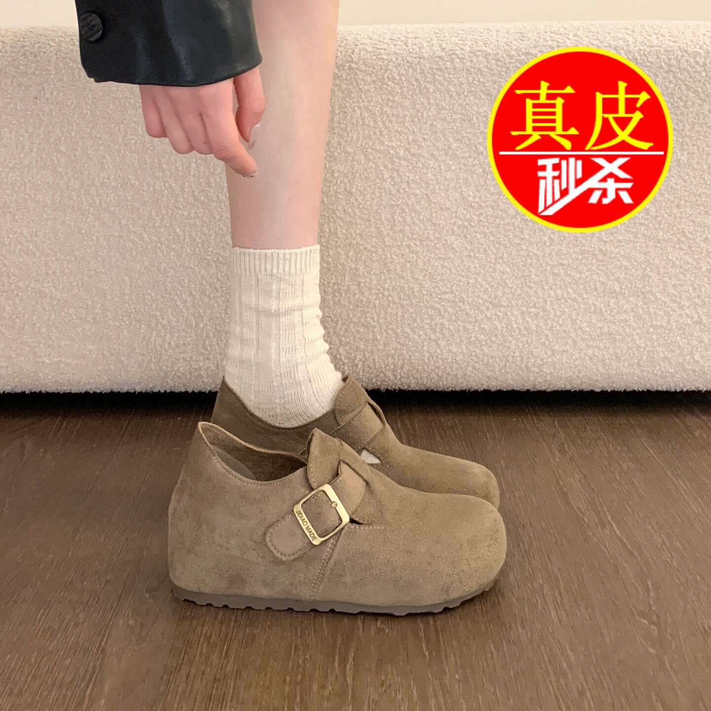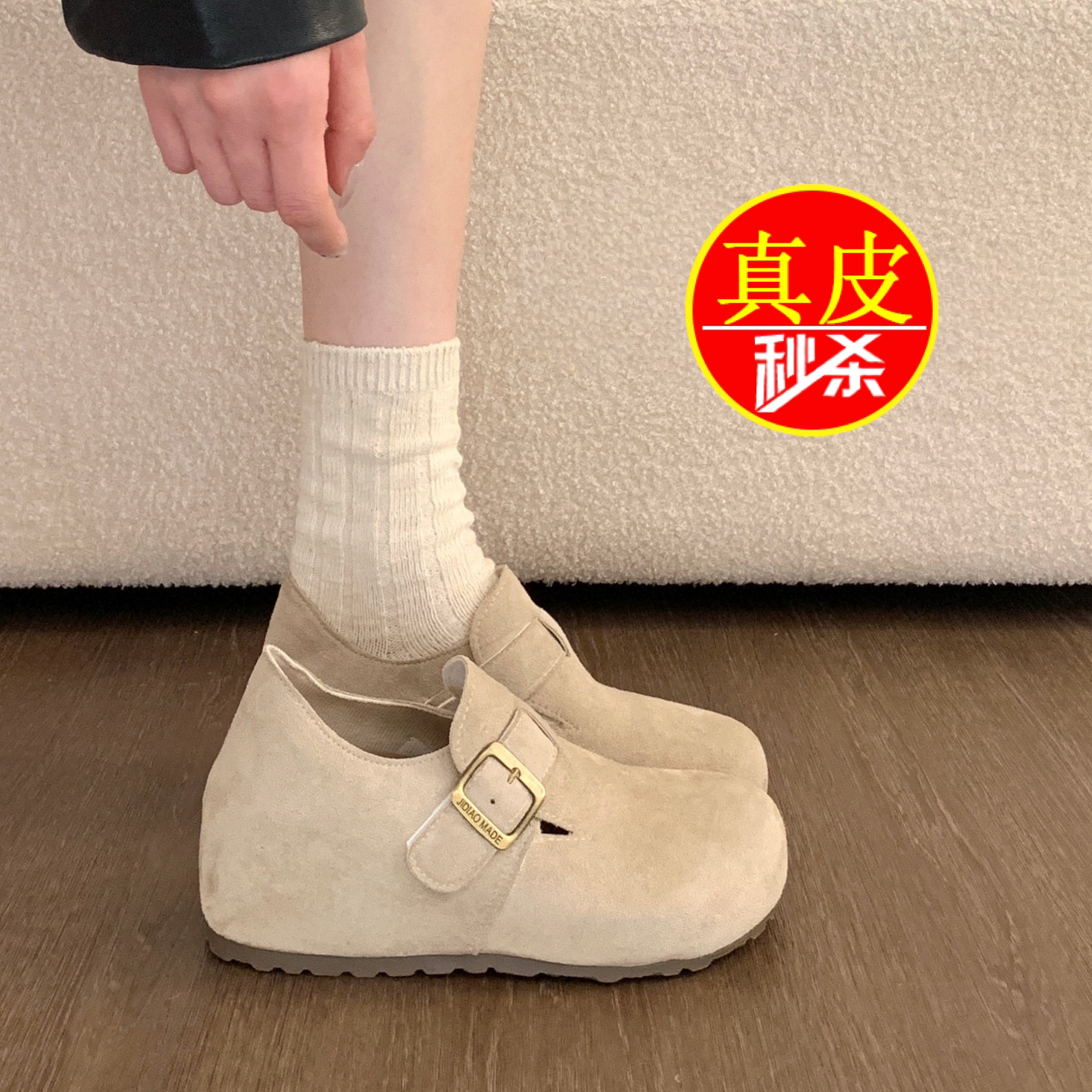 淘宝悠悠我心女鞋坊,品牌真皮厚底内增高全包勃肯鞋女鞋2026春季玛丽珍单鞋软底乐福鞋