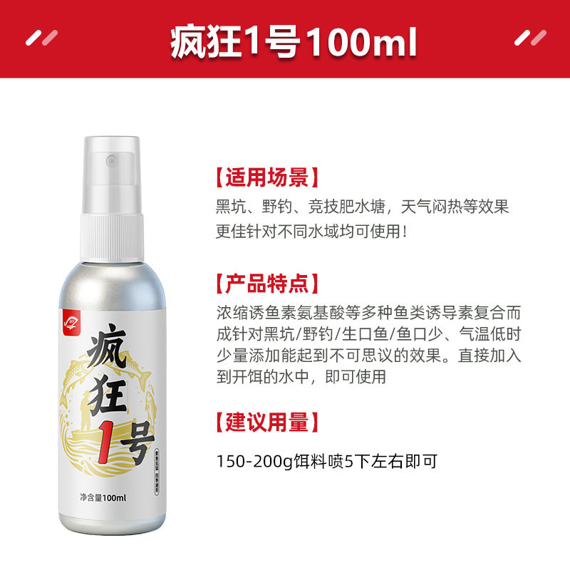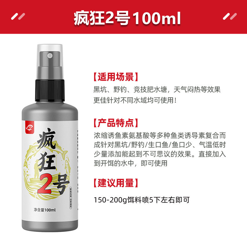 疯狂1号疯狂2号钓鱼诱鱼添加剂黑坑野钓通用喷雾打窝钓鱼剂添加剂