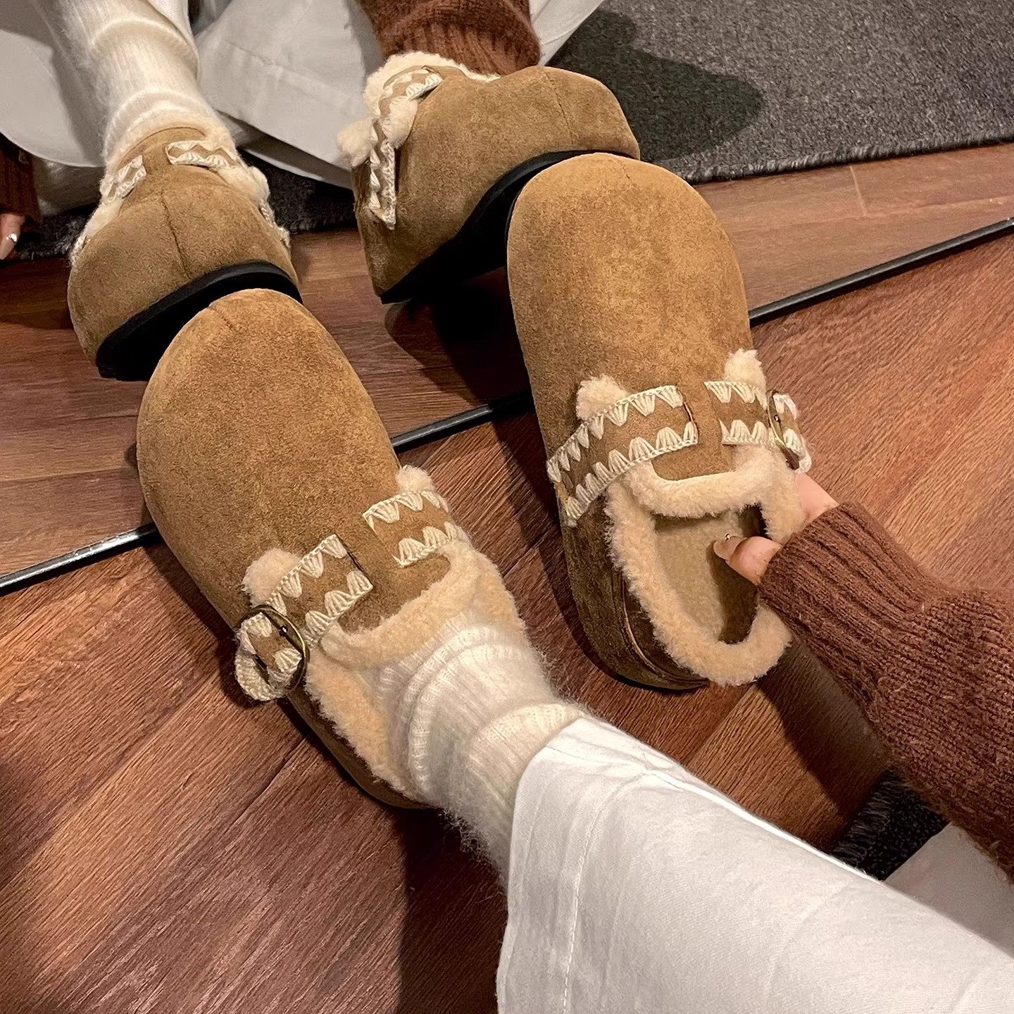 羊皮!勃肯鞋女2025新款极简风灰色圆头可踩脚两穿保暖内增高棉鞋券后价¥150.8Mona高端定制女鞋 38 分前