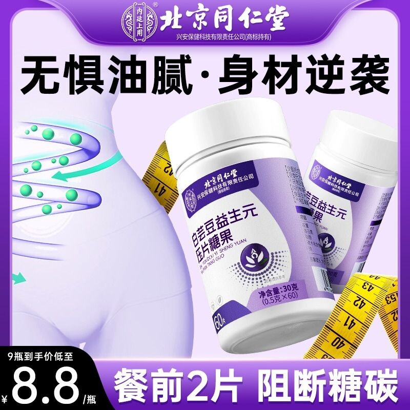 天猫天天特卖工厂店,白芸豆阻断剂片咀嚼压片糖果控糖阻断碳水脂肪餐前阻隔片官方正品,无惧油腻,助力好身材