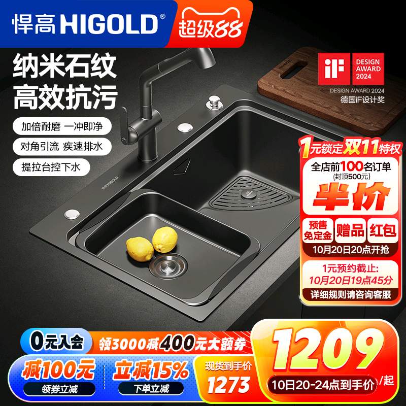 天猫悍高五金官方旗舰店,悍高厨房纳米石纹水槽单槽304不锈钢洗菜盆洗碗盆台上台下大单盆