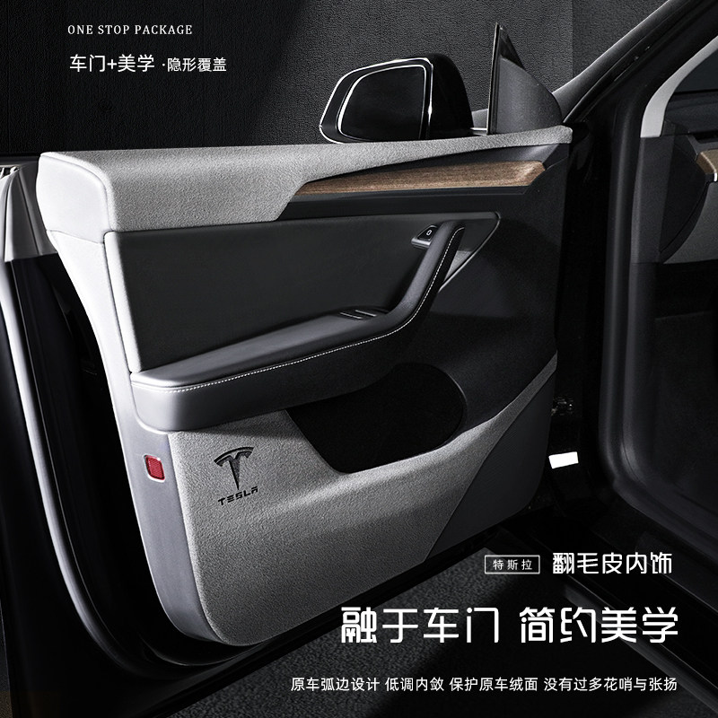天猫凤栖桐旗舰店,特斯拉Model3/Y翻毛皮车门防踢垫,【热卖款!】特斯拉model3Y专用翻毛皮改装
