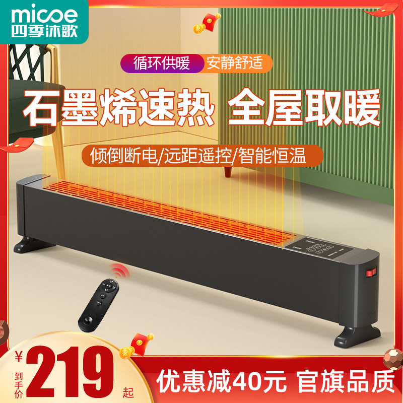 天猫四季沐歌生活电器旗舰店,石墨烯踢脚线取暖器节能省电家用,石墨烯新材料 速热升温 远距遥控 多款可选
