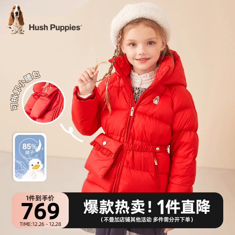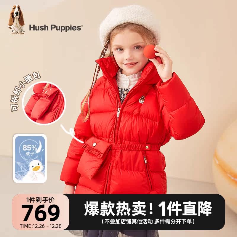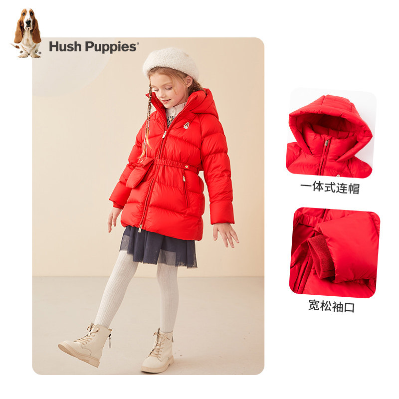 暇步士童装女童鹅绒羽绒服冬季新款儿童过年服大童中长款新年外套