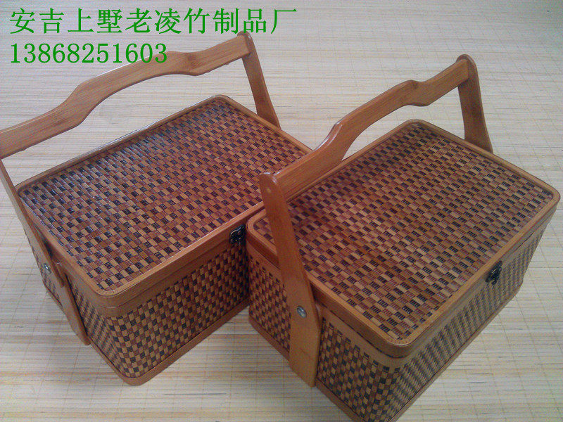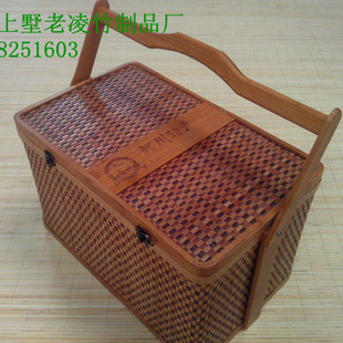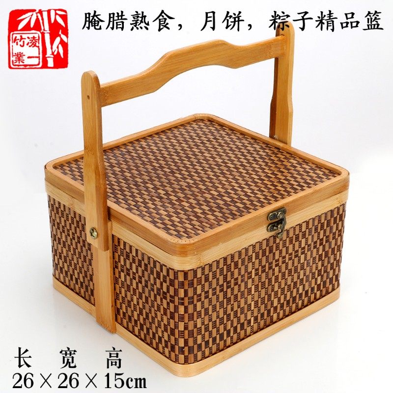 腌腊熟食竹编礼盒包装 年货节日包装方竹篮子 精制美观高档礼品篮