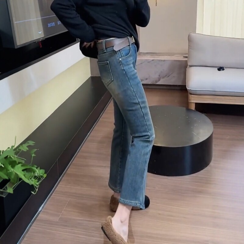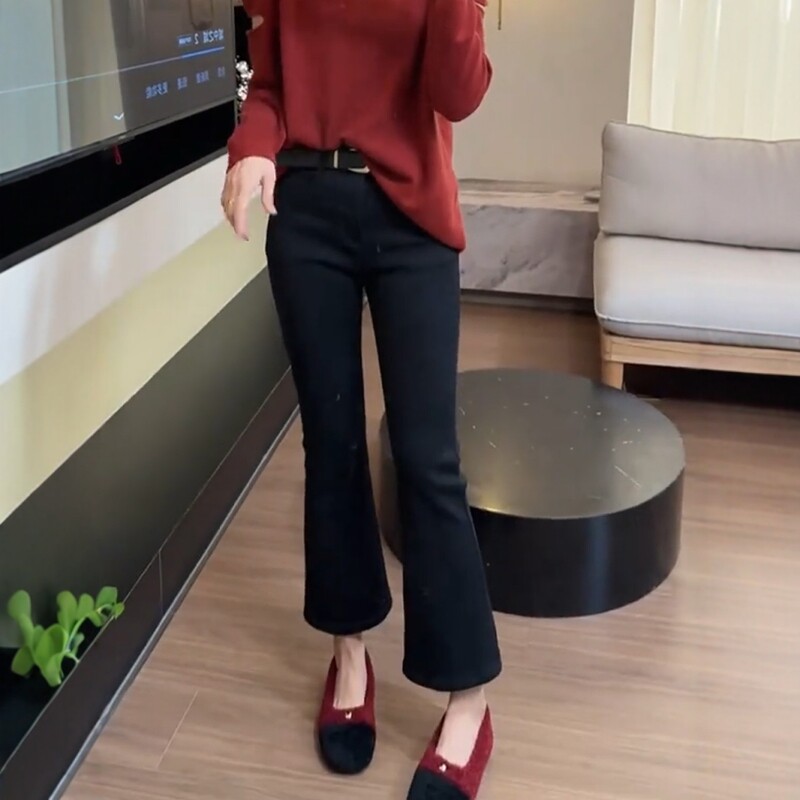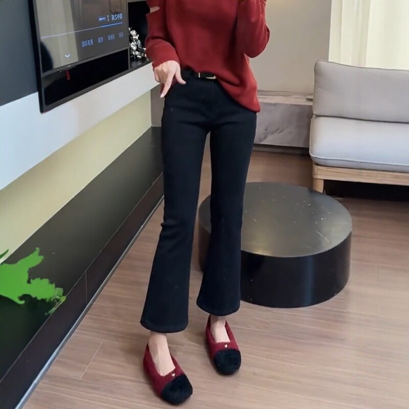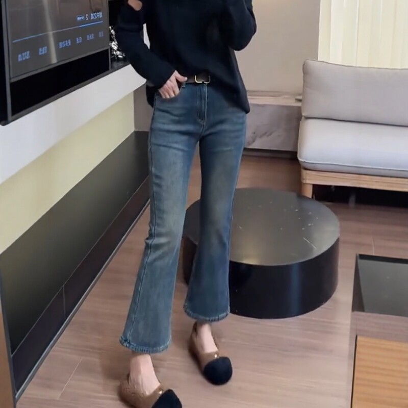2025年春季爆款高腰遮肉显瘦牛仔裤子大码弹力百搭九分微喇叭裤女