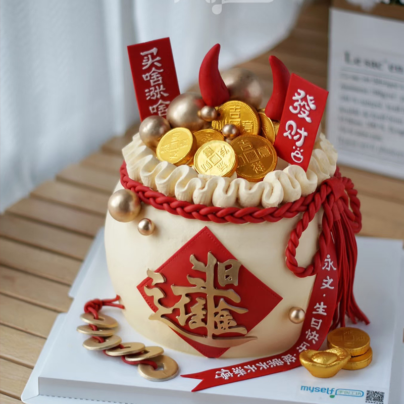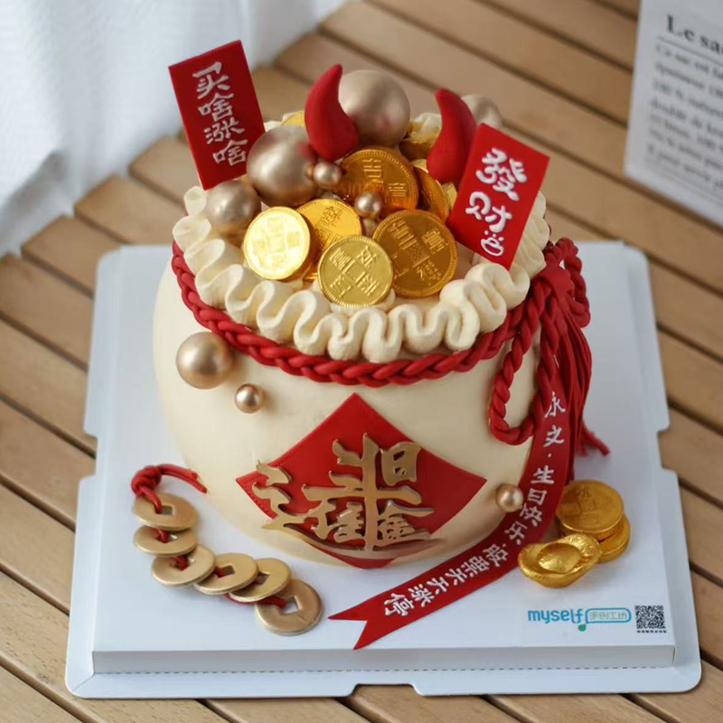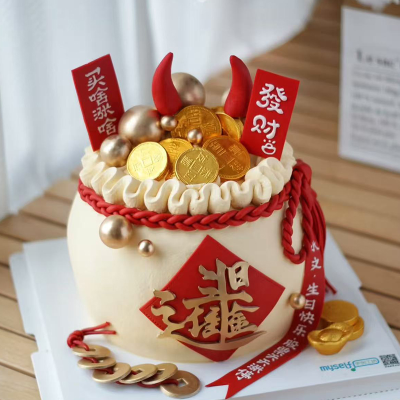 淘宝麦甜厨房烘焙,网红日进斗金蛋糕装饰摆件发财暴富生意兴隆对联男士生日烘焙装扮