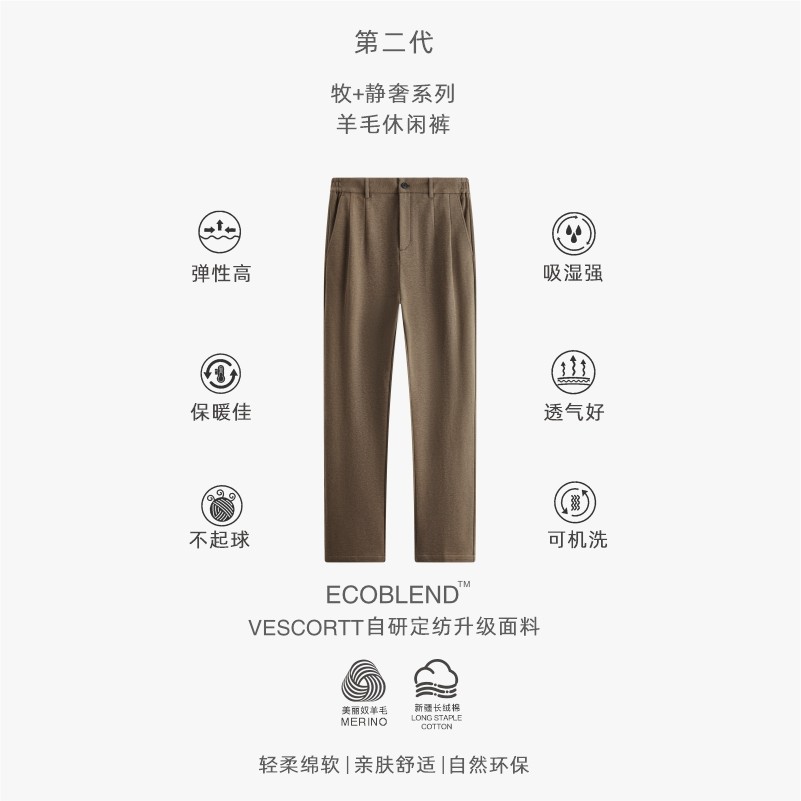 天猫VESCORTT旗舰店,美利奴羊毛混纺可机洗休闲裤男,面料材质:60%美利奴羊毛 30%长绒棉 10%天丝