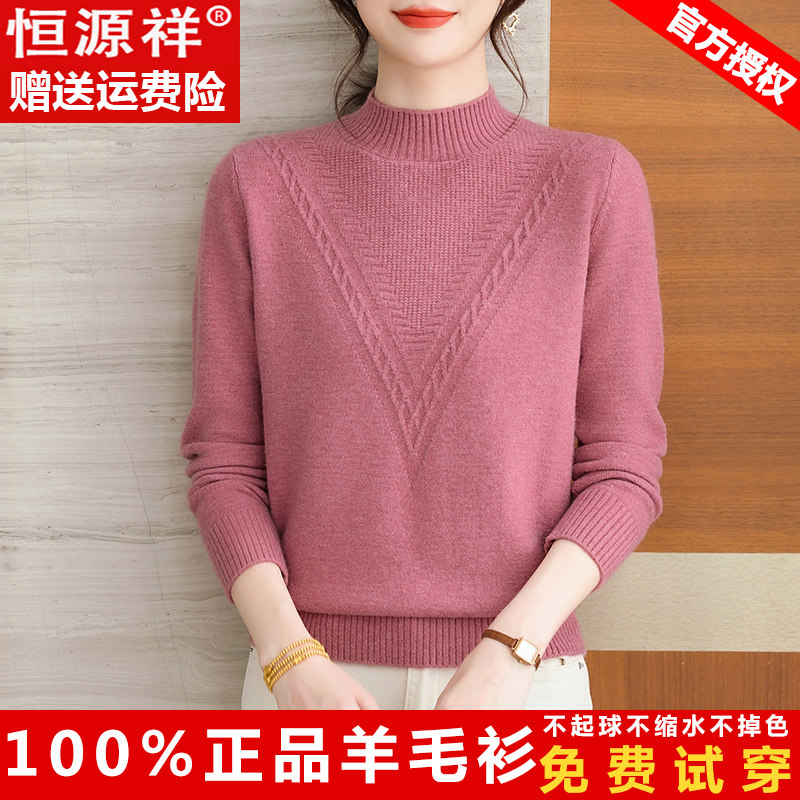 淘宝女装品牌直销AA,百搭羊毛衫恒源祥半高领套头