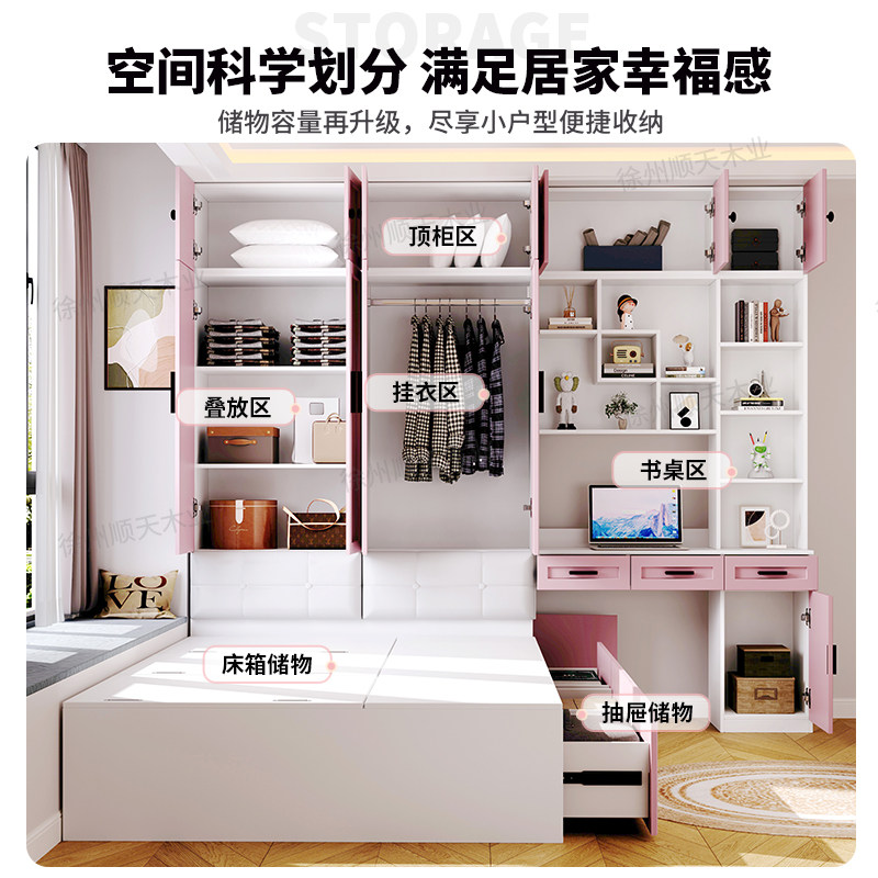淘宝徐州顺天木业,榻榻米衣柜床多功能储物床