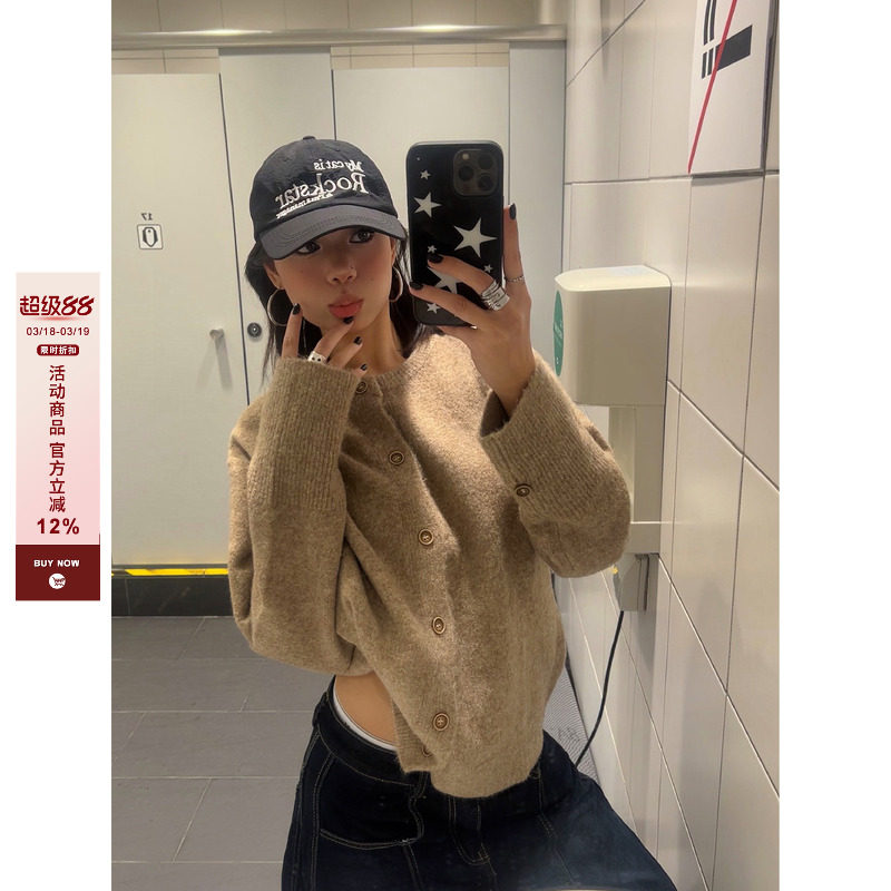 淘宝F383,【F383】简约圆领针织开衫
