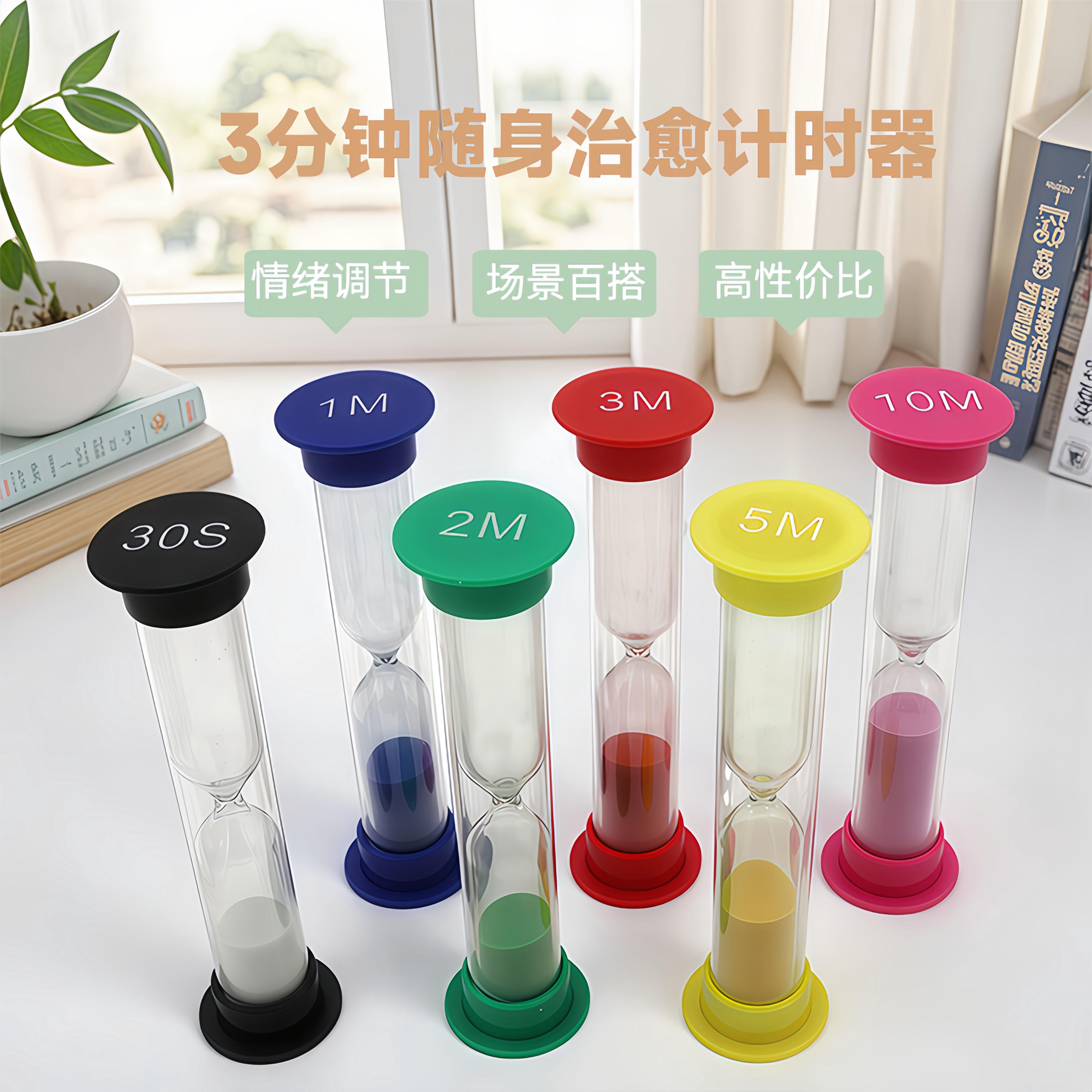 小圆盖双层防摔沙漏计时器30秒-10分钟儿童时间管理小巧可爱便携