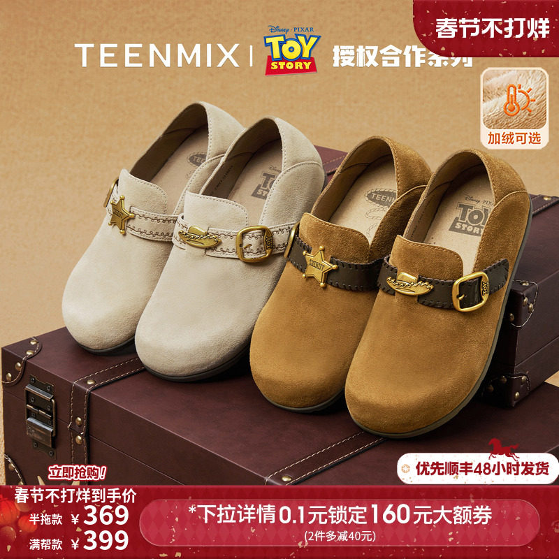 天猫天美意teenmix官方旗舰店,天美意玩具总动员联名胡迪厚底沙发勃肯鞋女秋新款软底加绒毛毛鞋,休闲潮流百搭复古