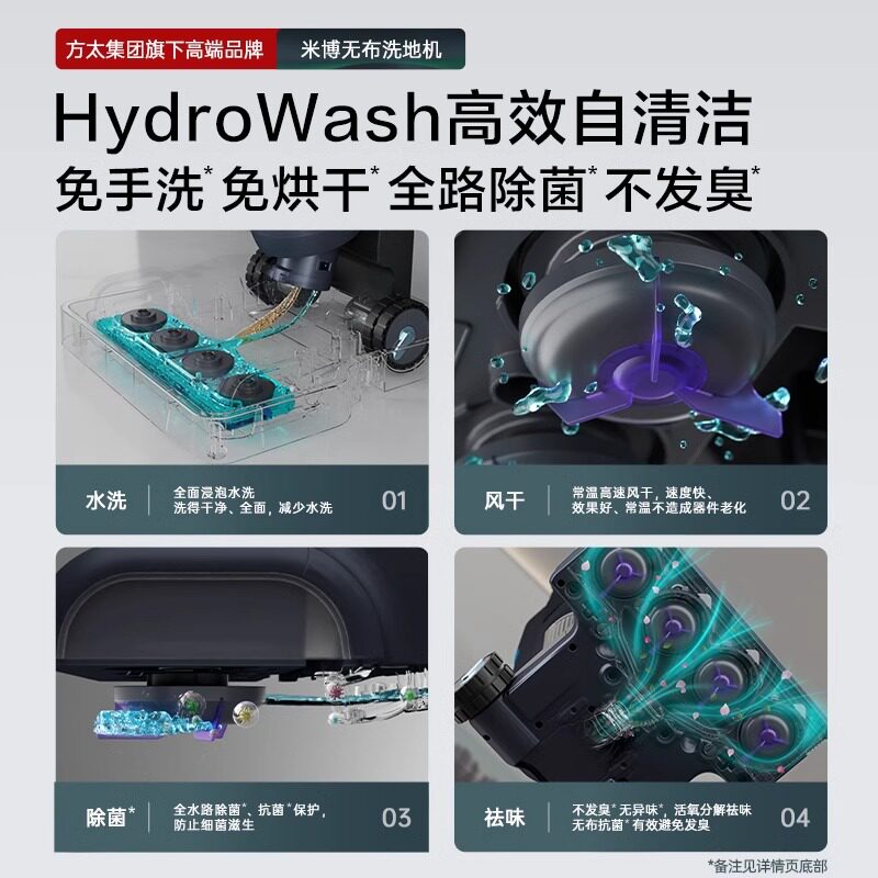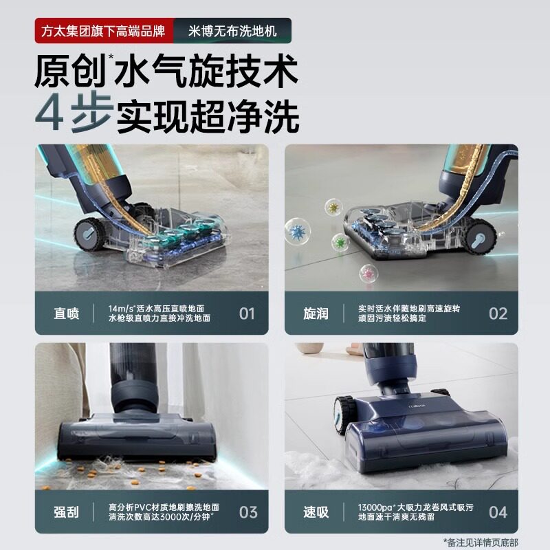 米博洗地机无滚布吸拖洗一体家用智能三合一拖地机Q7proV7pro正品