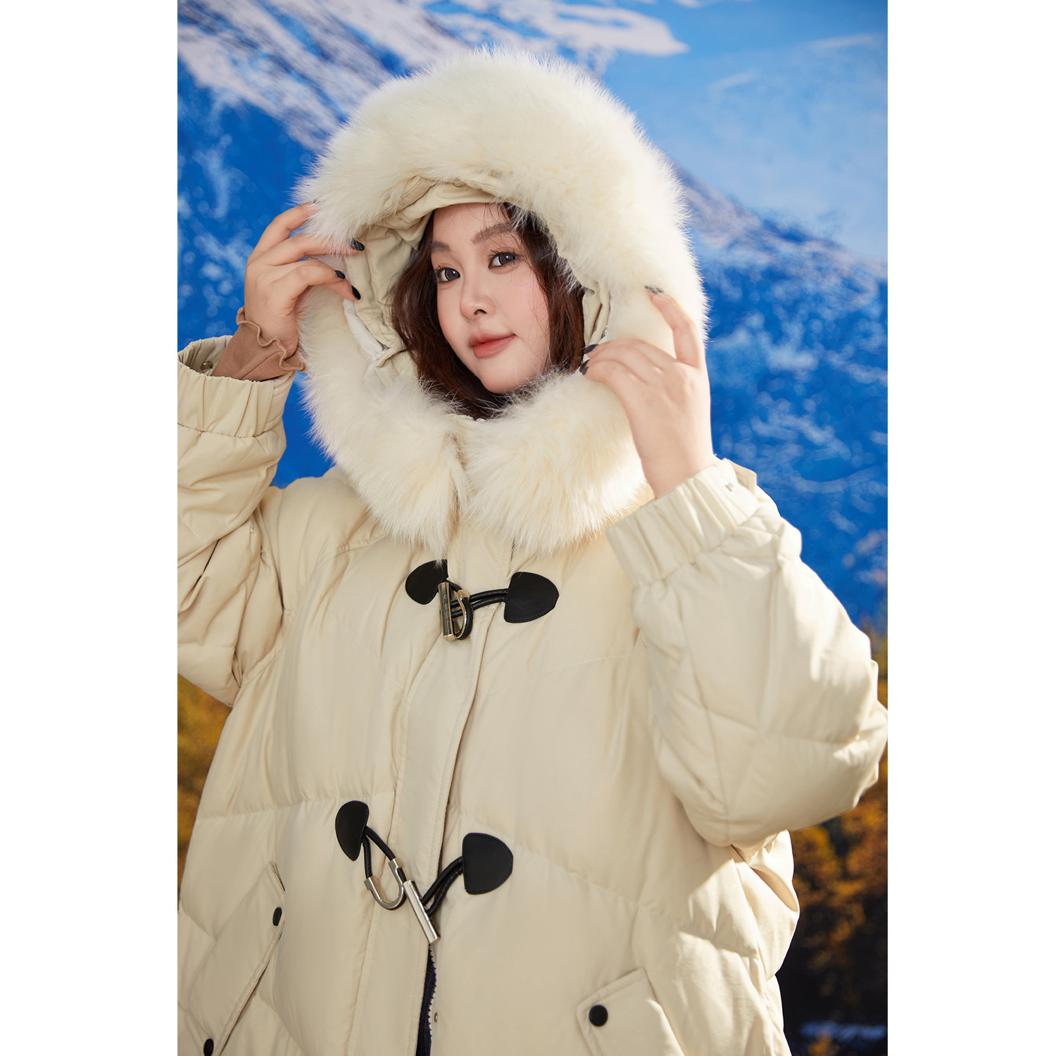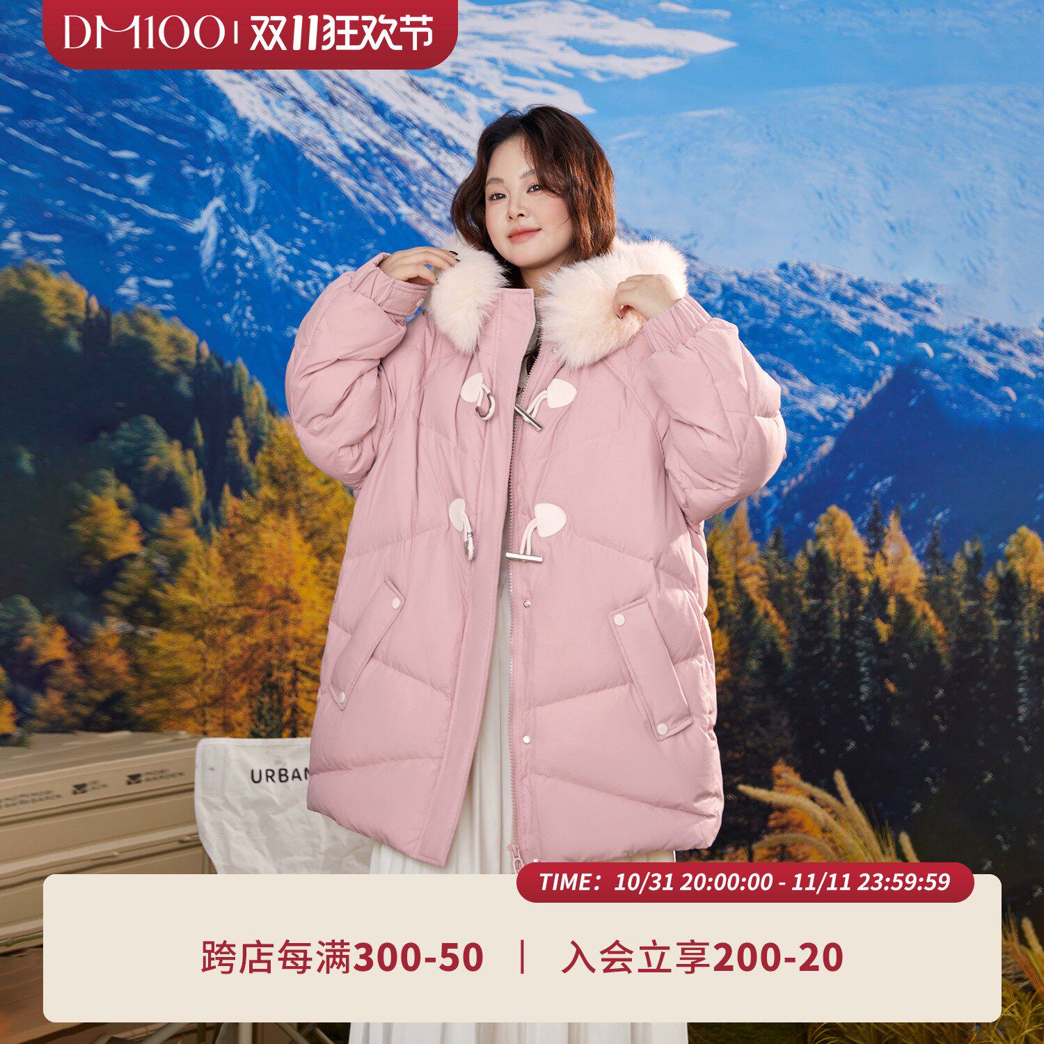淘宝大码百分百LULU家微胖定制女装,DM100微胖mm大码女装2024冬新款真狐狸毛领不规则羽绒服长版外套