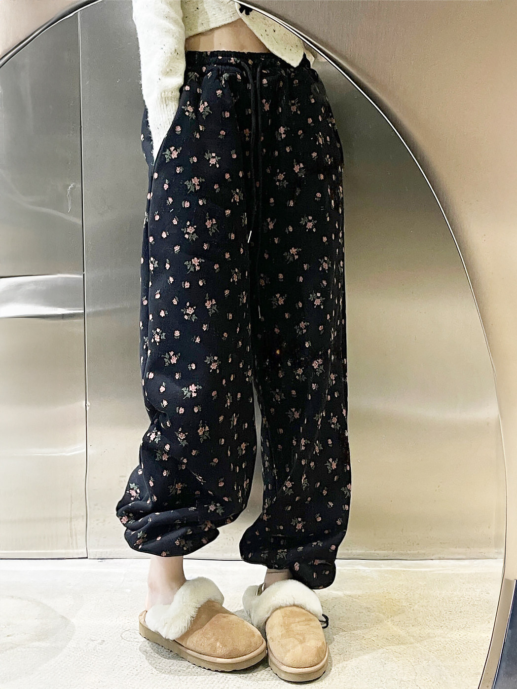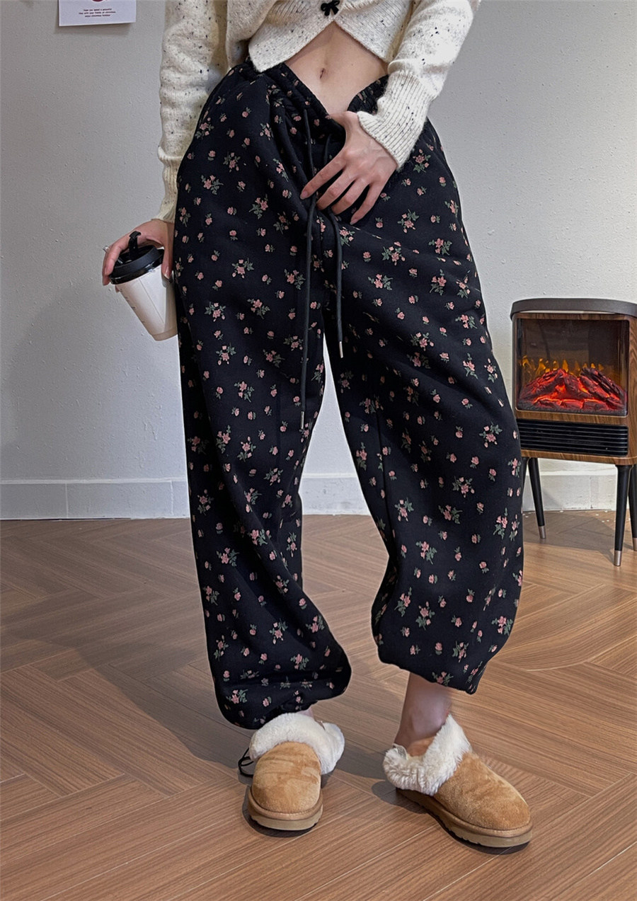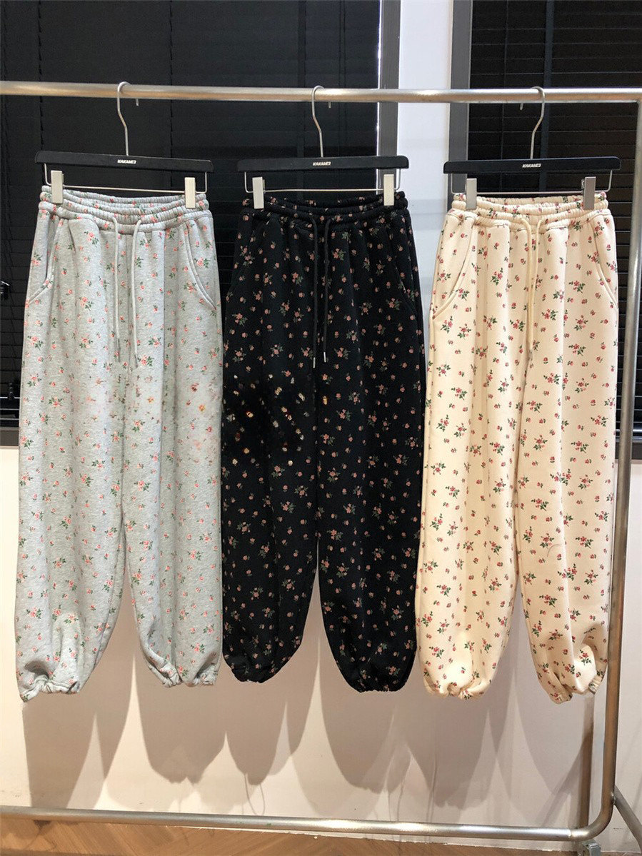 淘宝三月 定制女装,高腰国潮小碎花九分裤秋冬卫裤